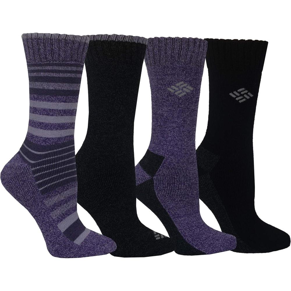 Columbia Men’s 4 Pack Mositure Control Crew Socks(Plum/Black)