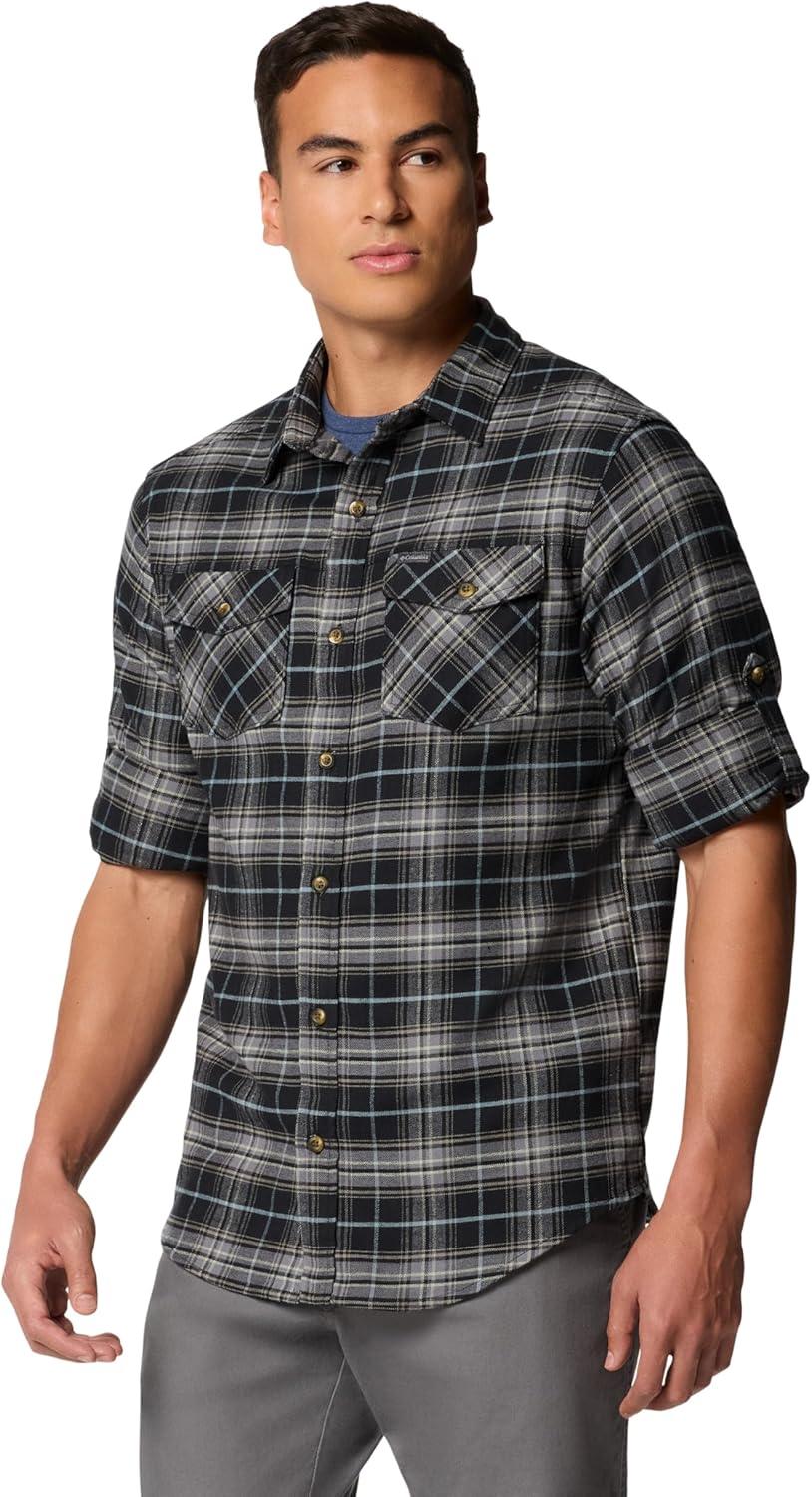 Columbia Men’s Bearmouth Springs Roll Up Long Sleeve Flannel Shirt(Black Small Multi Tartan)