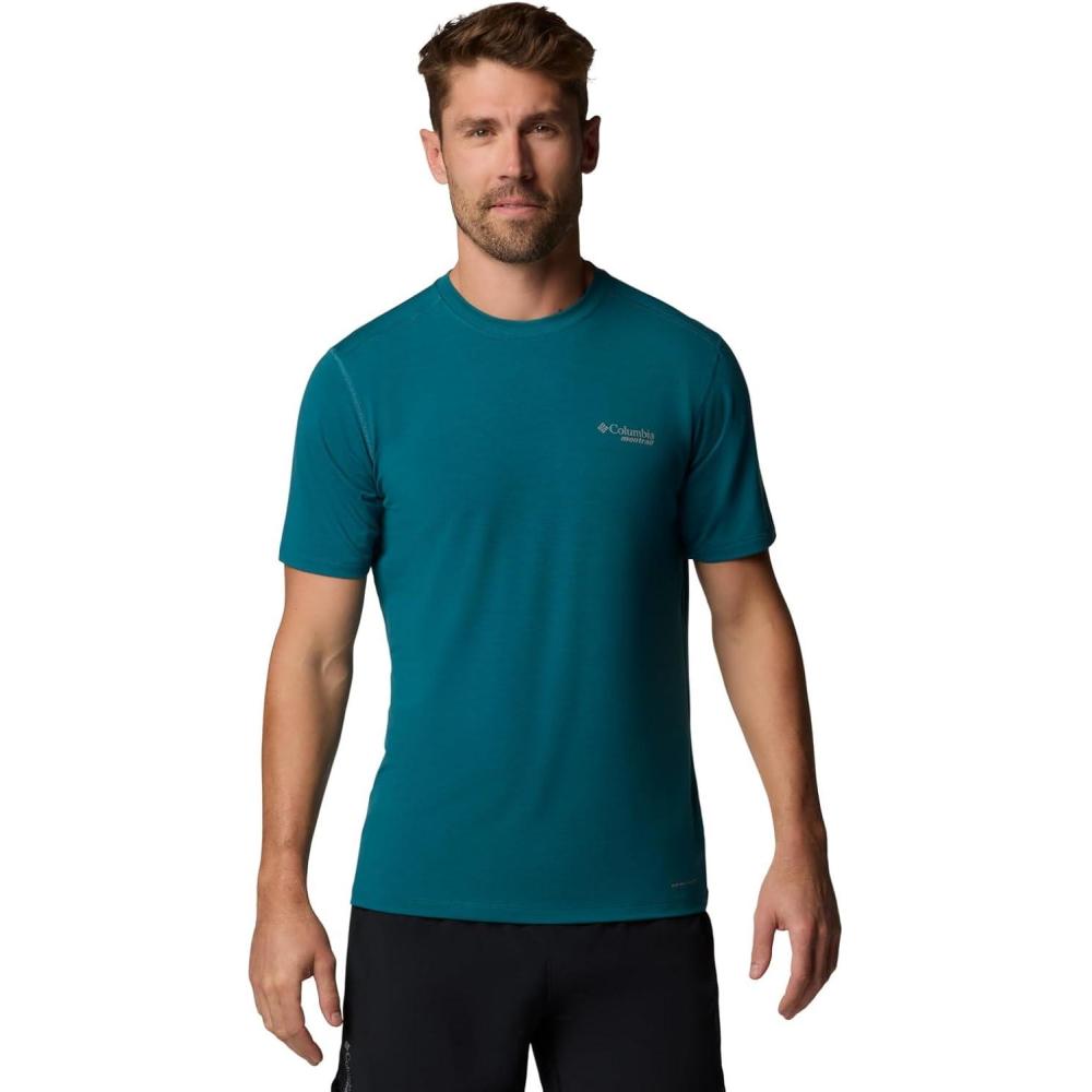 It may look like a basic tee, but it packs a performance punch to keep you running smoothly. Featuring moisture-wicking technology, comfort stretch fabric that includes more than 60% recycled content, and reflective details to keep you seen. Columbia offers this tee in multiple colors and sizes. Active fit.