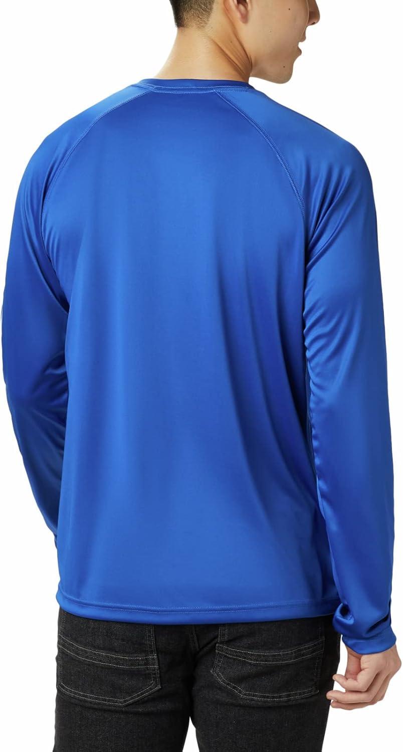 Made with sweat-wicking, sun-shielding stretch fabric, this performance shirt keeps you going on warm days. From town to trail, it has you covered. Columbia offers this shirt in multiple colors and sizes. Extended sizing available. Regular fit.