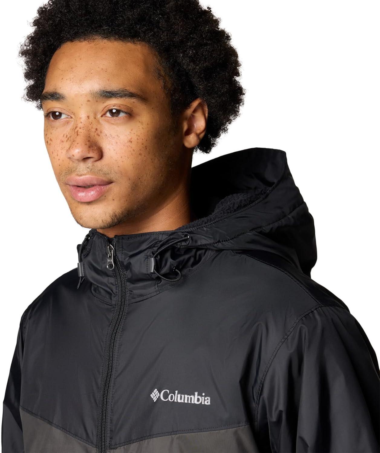 Lightweight and warm, this Columbia men’s rain jacket has a plush Sherpa fleece lining and a water-resistant shell that takes care of the drizzle. Columbia offers this jacket in multiple colors and sizes. Extended and tall sizing available. Regular fit.