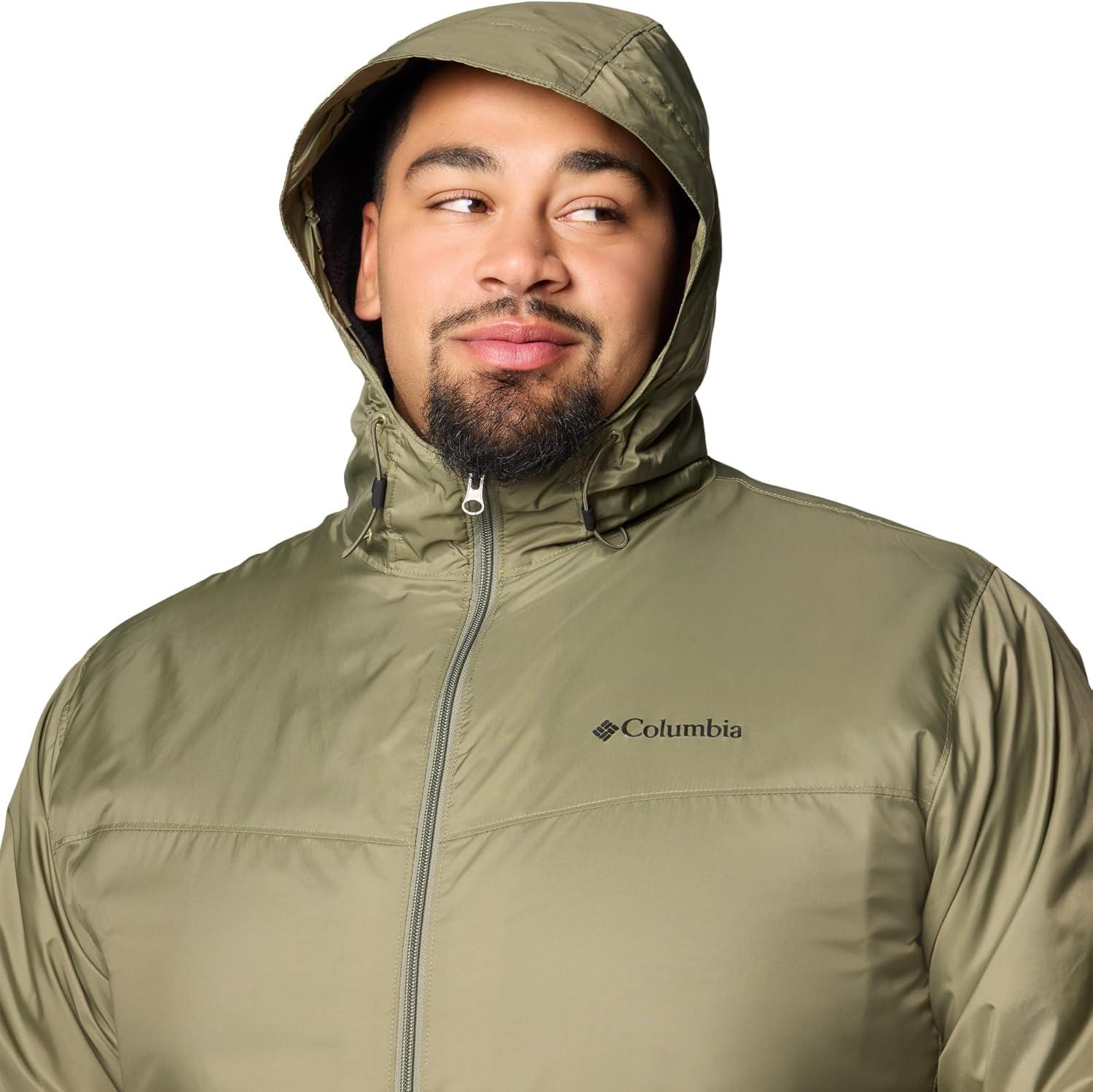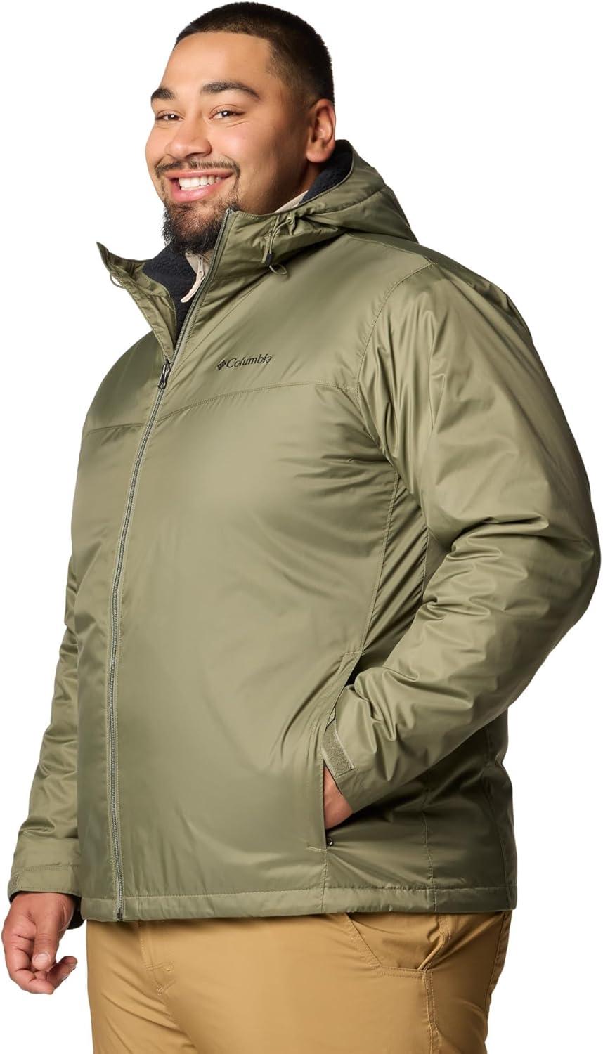 Lightweight and warm, this Columbia men’s rain jacket has a plush Sherpa fleece lining and a water-resistant shell that takes care of the drizzle. Columbia offers this jacket in multiple colors and sizes. Extended and tall sizing available. Regular fit.