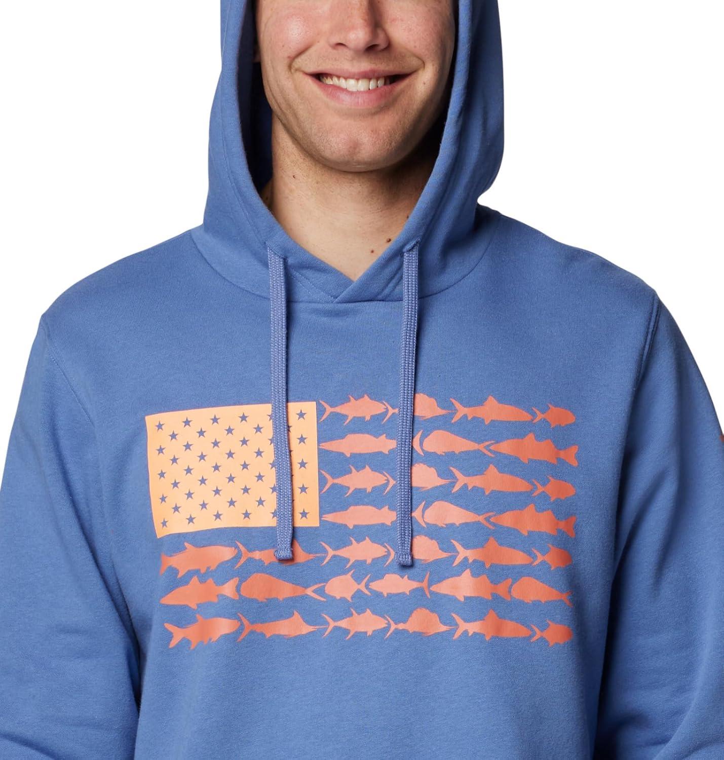 Columbia Men’s PFG Fish Flag Ii Hoodie(Bluebell/Faded Peach Usa)