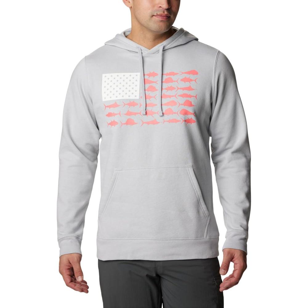 imageColumbia Mens PFG Fish Flag Ii HoodieCool GreySalmon Offshore Fish