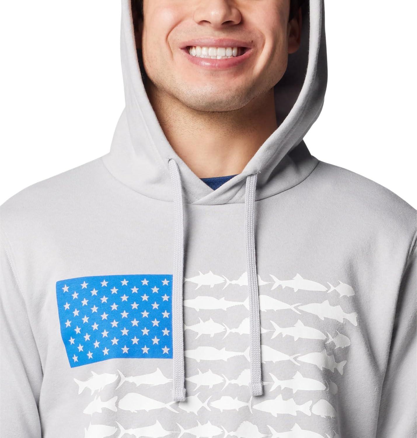 Columbia Men’s PFG Fish Flag Ii Hoodie(Cool Grey/White Usa)