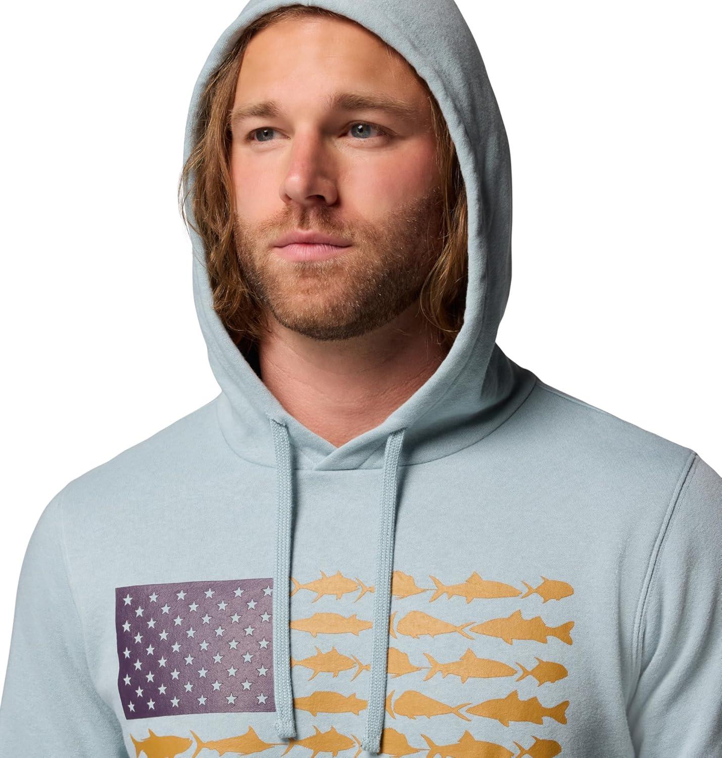 Columbia Men’s PFG Fish Flag Ii Hoodie(Crushed Blue/White Usa)
