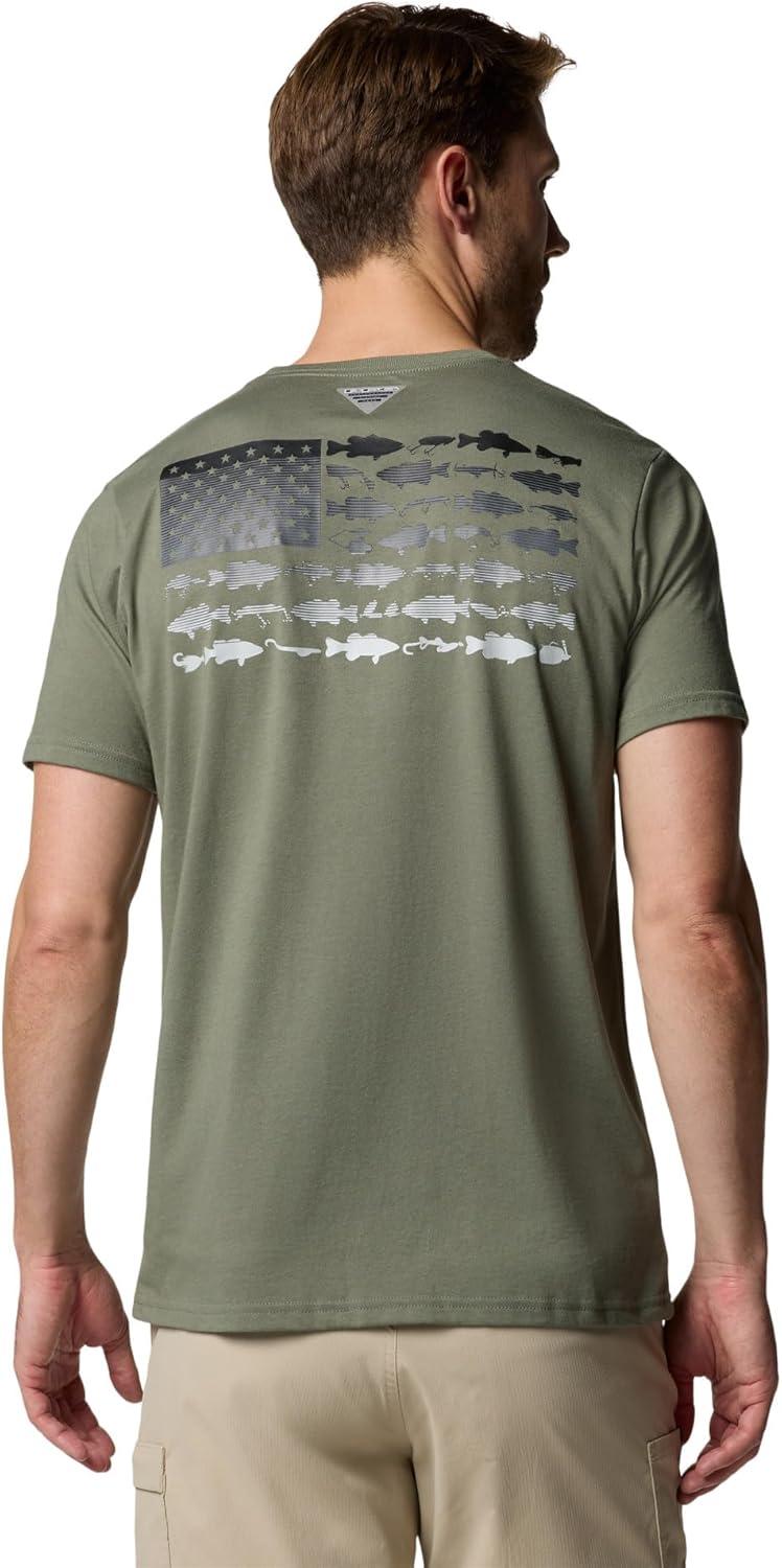 Columbia Mens PFG Fish Flag Ii Short Sleeve(Cypress/Black Bass + Lures)