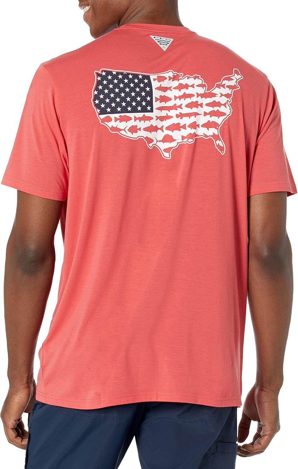 Columbia Men's PFG Fish Flag Tech Tee Ss(Sunset Red/Statetriot Usa Graphic)