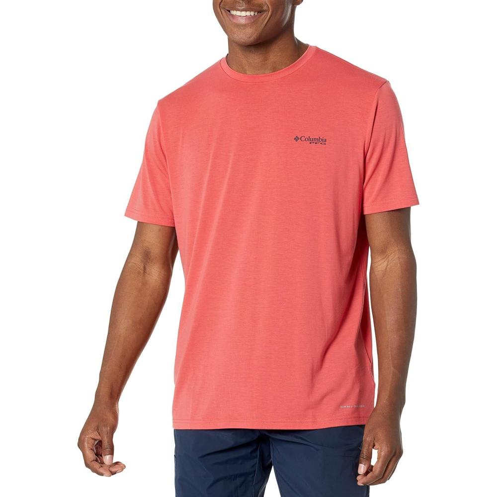Make your passion for fishing known with this performance shirt, featuring UPF 50 sun protection and enhanced wicking power. This tech loaded tee is necessity for any day out on the ocean, lake, or river. This shirt features Omni-Shade tech to block and shield you from harmful UVA and UVB sun rays, while the quick-drying Omni-Wick fabric pulls perspiration away from the skin for comfortable all-day wear. Columbia offers this t-shirt in multiple staple colors and sizes. Extended sizing available. Regular Fit. To ensure the size you choose is right, utilize our sizing chart and the following measurement instructions: For the chest, measure at the fullest part of the chest, under the armpits and over the shoulder blades, keeping the tape measure firm and level
