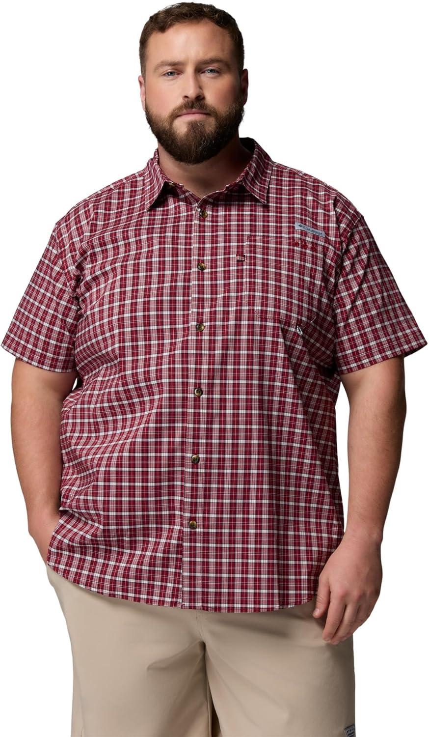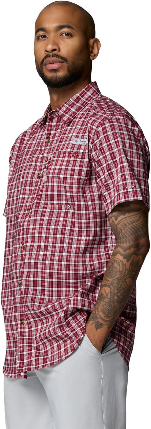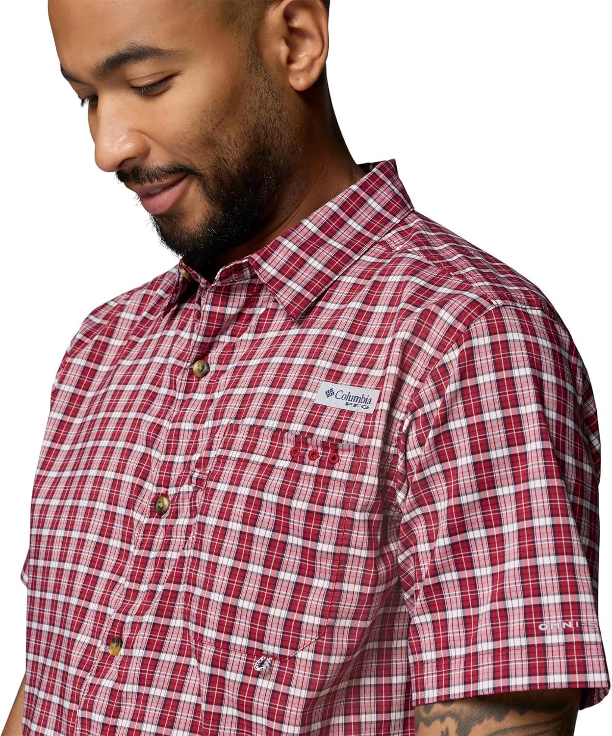 Columbia Mens PFG Harbor Peak Short Sleeve Shirt(Beet Offshore Tartan)