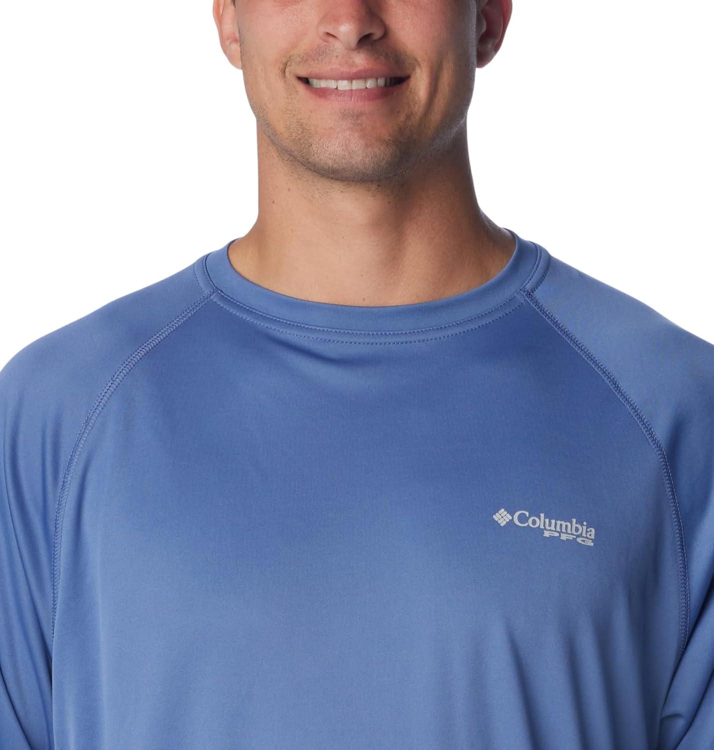 Columbia Men’s PFG Terminal Tackle PFG Patriot Long Sleeve Shirt(Blue Echo/White Logo)