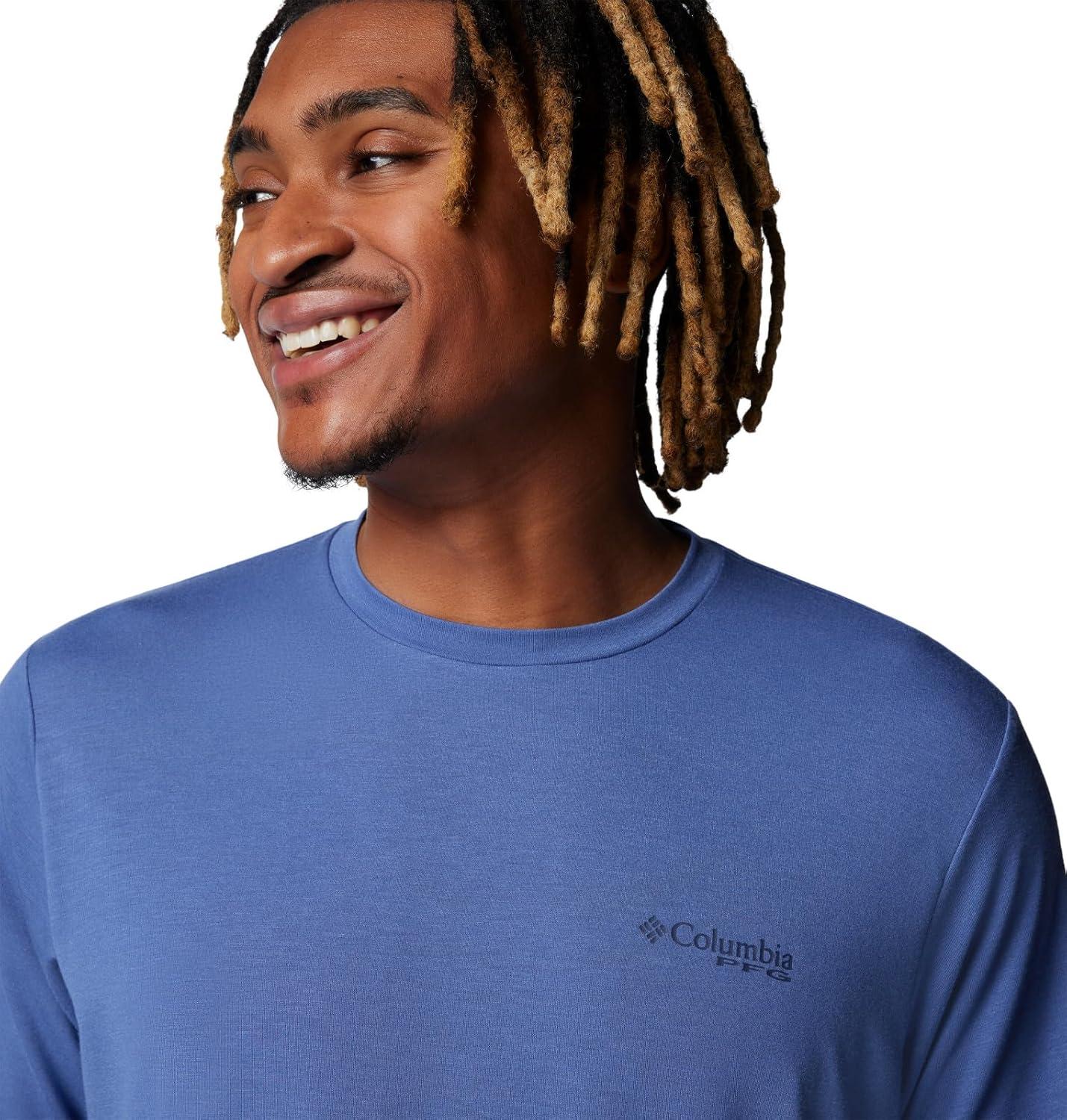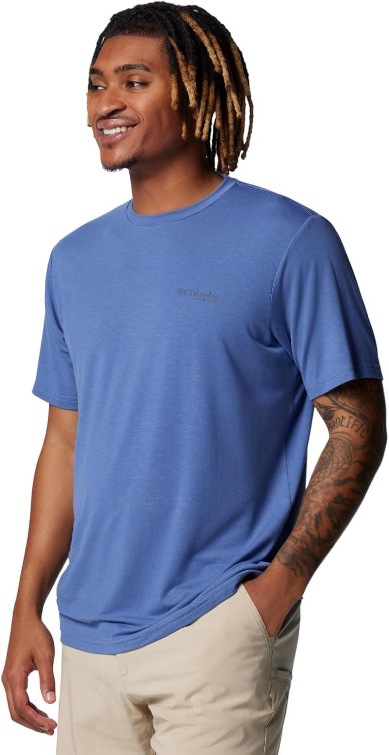 Columbia Men’s PFG Uncharted Tech Tee Short Sleeve(Canyon Blue Easy Breezy)
