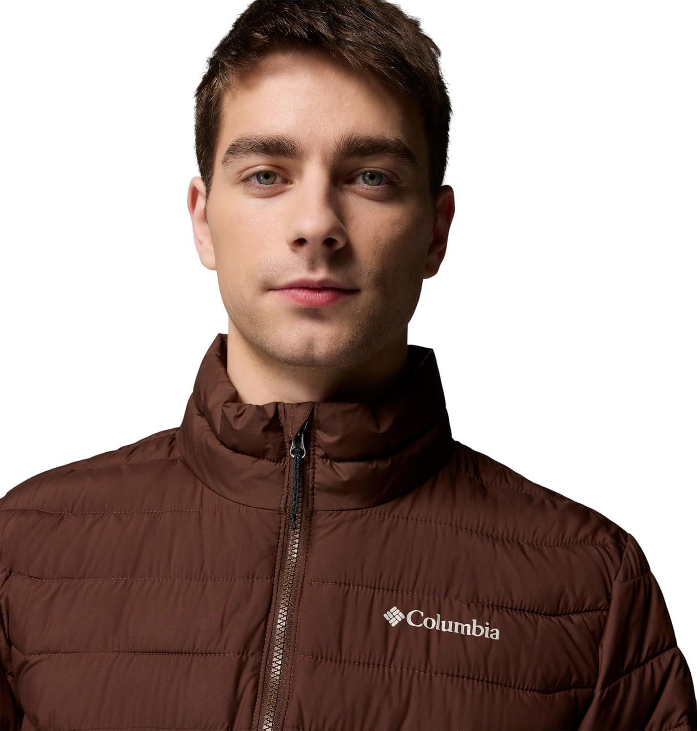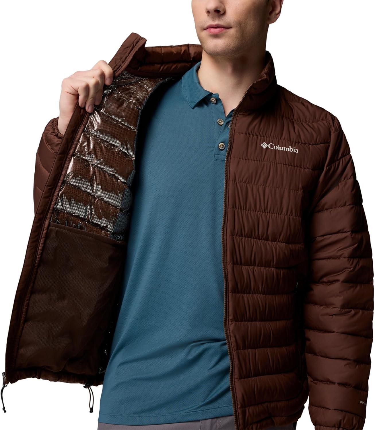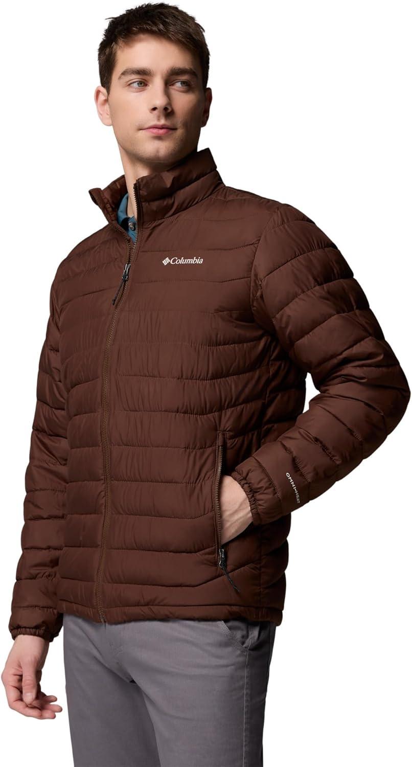 Highly versatile, lightweight, and warm, this Columbia men’s jacket offers rain-and-stain repellency plus a thermal-reflective lining to keep you protected in light rain or snowfall. It's packed with recycled synthetic insulation. Columbia offers this jacket in multiple colors and sizes. Extended and tall sizing available. Active fit.