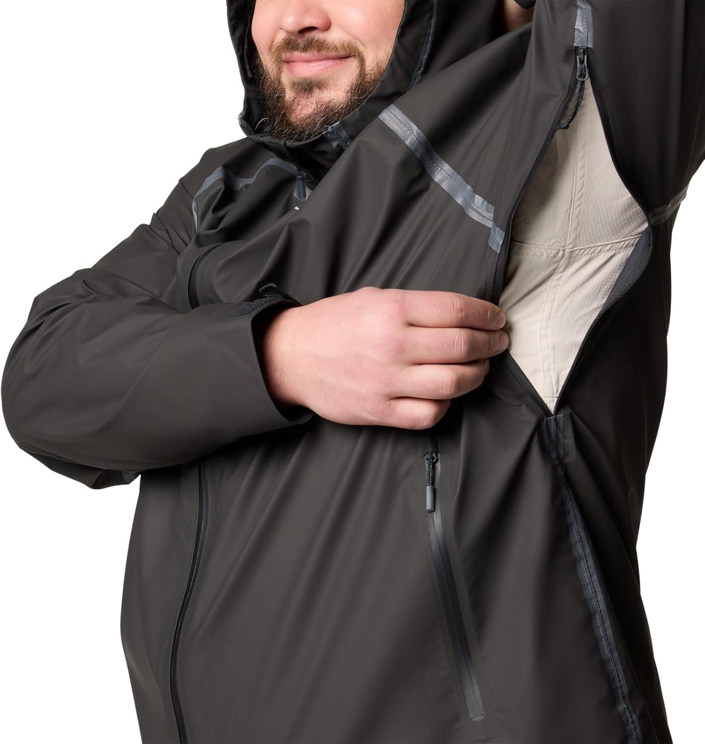 A premium, high-performance rain jacket built to keep you dry on the trail no matter what, made from 100% recycled nylon with Columbia’s most advanced waterproof-breathable tech yet. It’s fully featured for bad weather with underarm vents, an adjustable hood and hem, and PU coated zippers. Columbia offers this jacket in multiple colors and sizes. Extended and tall sizing available. Regular fit.