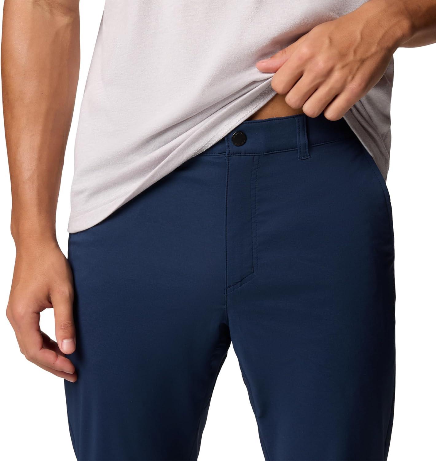 Made with stretch fabric that’s water-and-stain-resistant for added weather protection, these Columbia men’s chino pants offer casual comfort for work, travel, and trail. They’re reinforced with a gusset detail and have multiple pockets to help keep you organized. Columbia offers these pants in multiple sizes. Available in various inseam lengths. Active fit.
