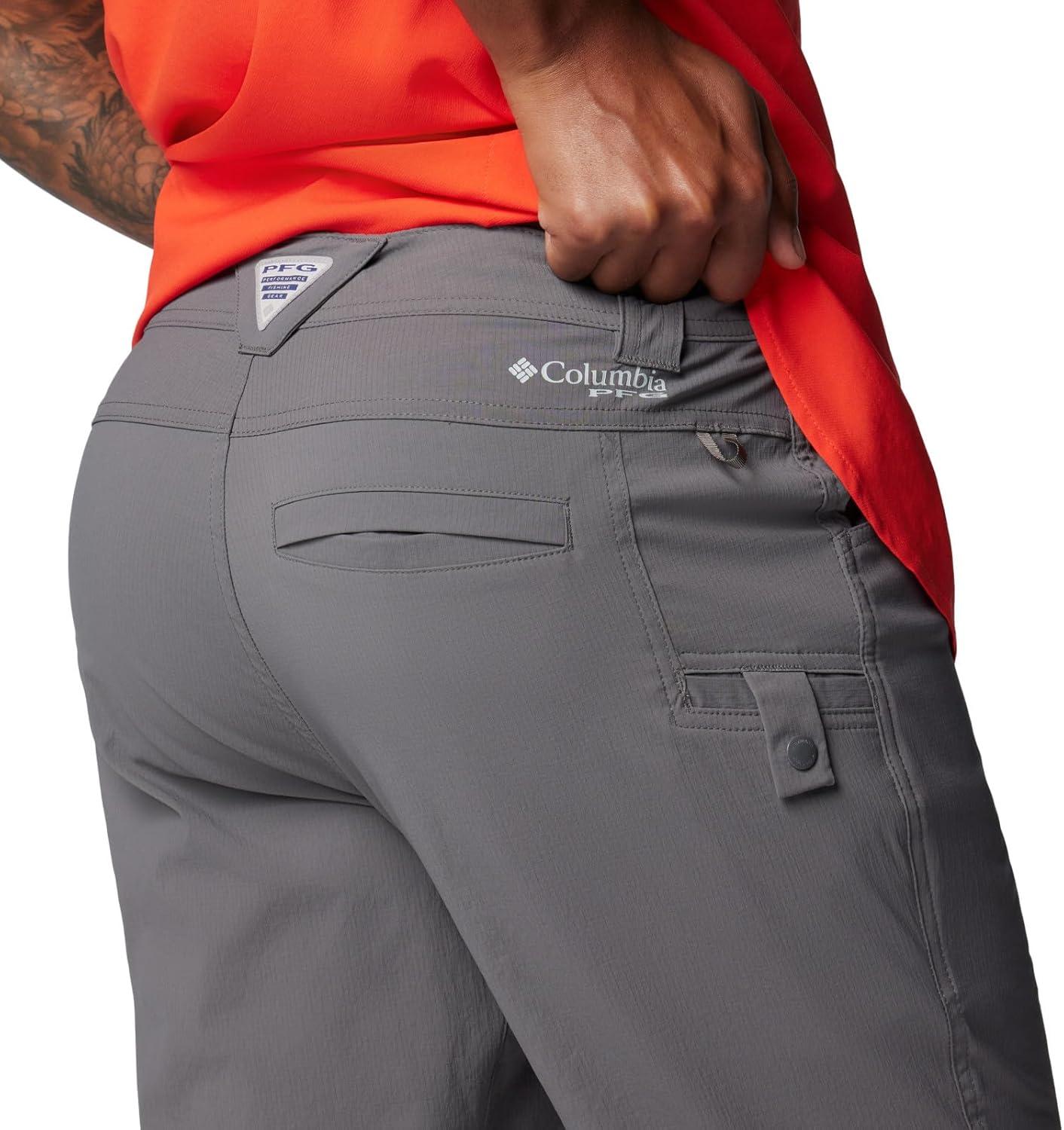 Built for performance on the water, these ultralight pants are treated with Omni-SHIELD Blood 'n Guts guard to repel water and stains that come with cleaning fish. They also pack Omni-Shade UPF 50 sun protection and plenty of pockets — including one specifically reinforced for pliers. Nylon fabric with a hint of stretch enables easy movement, while the utility loop is sure to come in handy out there. Columbia offers these pants in multiple colors and sizes. Available in various inseam lengths. Regular Fit.