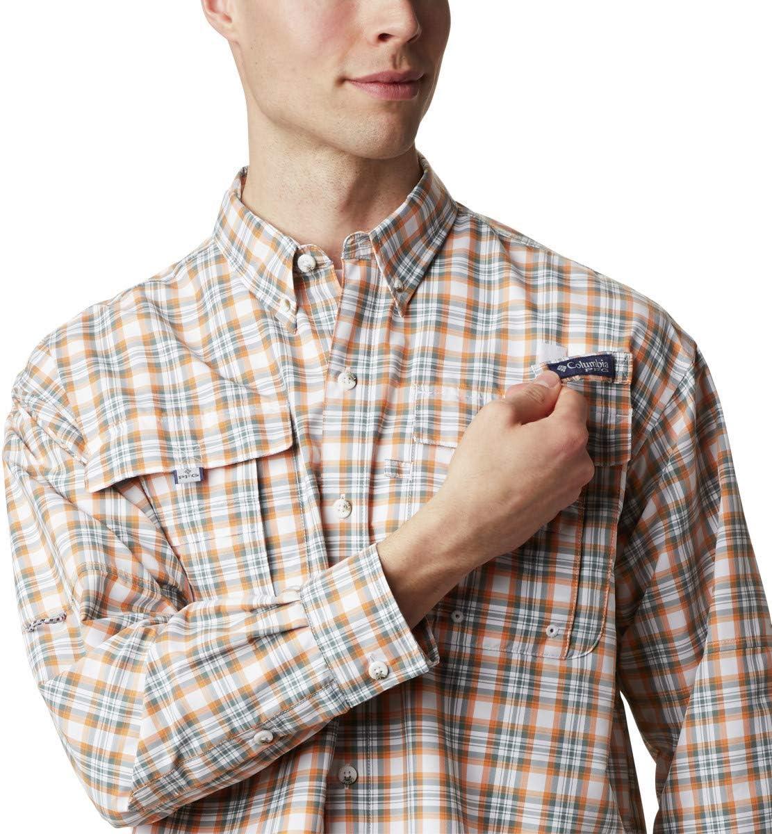 A crisp print version of our hard-working Bahama fishing shirt provides helpful performance fishing features, it is as essential as your lucky lure or your top-secret spot on the lake. Constructed of a nylon blend, it features four hook and loop closed fly box pockets at the chest, a tool holder and utility loop and a rod holder loop that frees up your hands to work with lines and lures. The Columbia Men’s Super Bahama Long Sleeve Shirt is both lightweight and durable, it’s a Relaxed Fit fishing shirt in printed nylon that dries fast. Built-in UV protection keeps the sun off your back. Designed for a comfortable relaxed fit, the mid-weight cotton comes in an all-over, yarn-dyed plaid and contemporary patterns. Fold-over collar. Button-up placket. Vented back. Roll-up long sleeves with tab holders and adjustable cuffs. Four fishing optimized velcro closure chest pockets, perfect for lures and other angling gear. Straight back yoke with box pleat and shirttail hemline.
