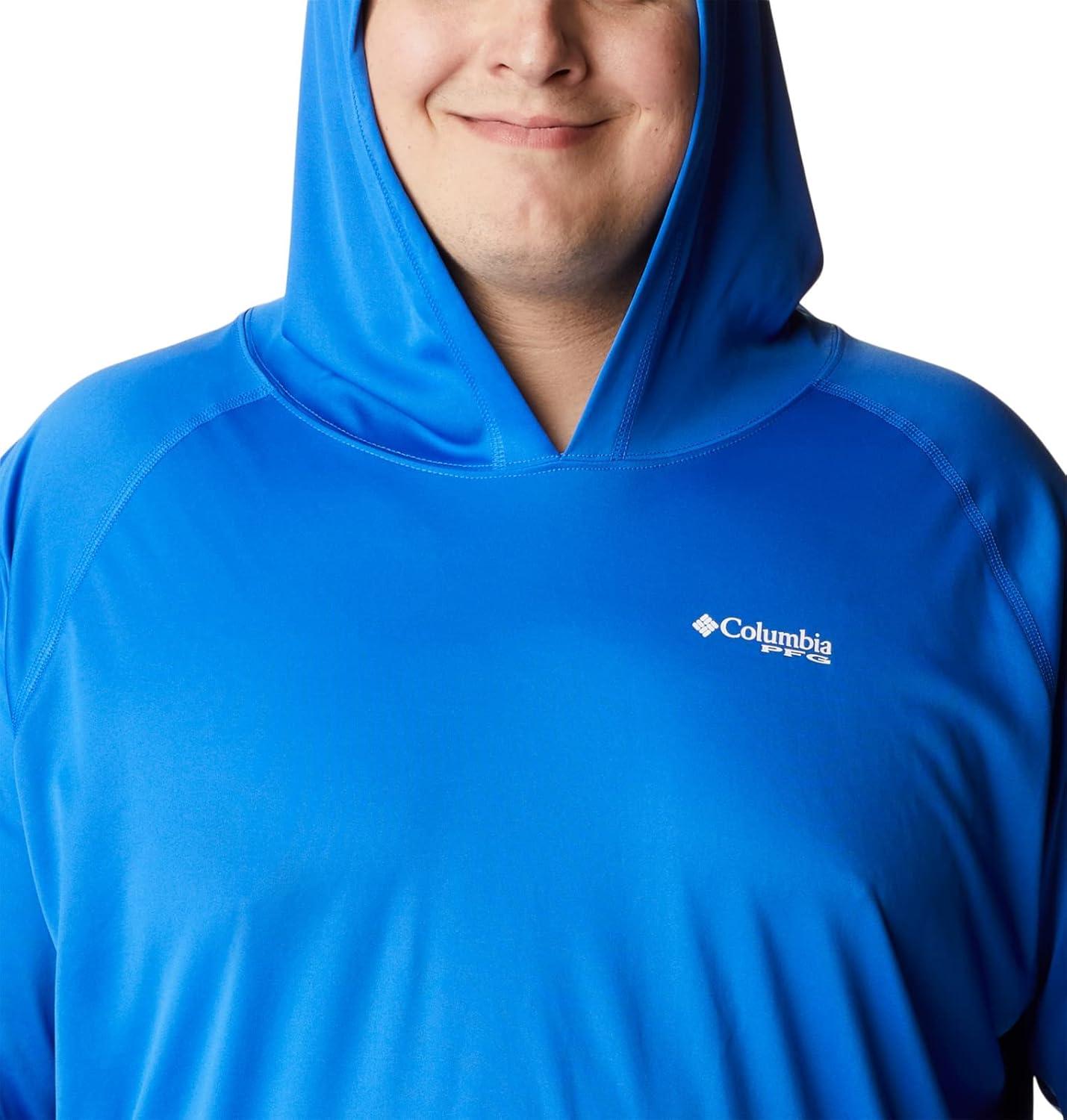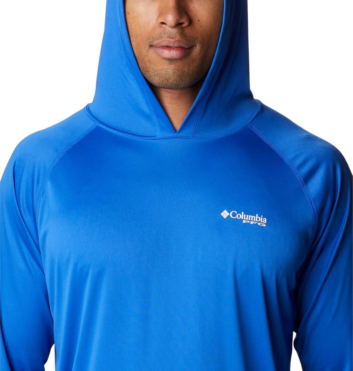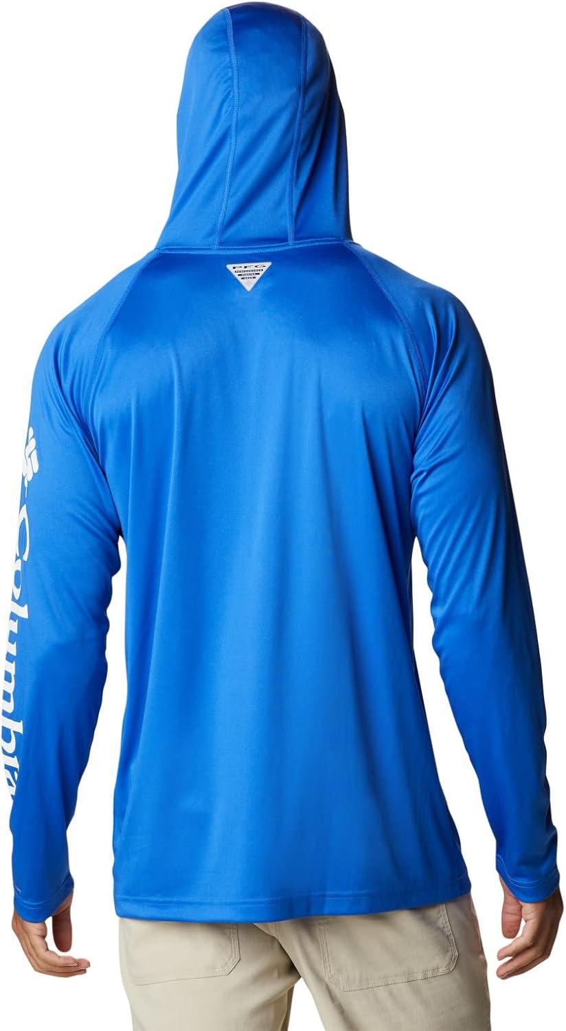 An anglers perfect hoodie: the Columbia PFG Terminal Tackle Hoodie is the ultimate day-out-on-the-boat staple for its quick-drying and sun protection fabric. This hoodie remains lightweight, yet durable, no matter the weather or catch. High quality materials and expert craftsmanship are the backbone of Columbia Men's apparel. The technology featured in this hoodie is necessary for any day out on the water. The exterior layer is made up of a combination of Columbia’s signature protection fabrics: UPF 50 works to block and shield your little one from harmful UVA and UVB sun rays known to cause skin damage; the advanced wicking fabric works to pull moisture away from the skin so sweat can evaporate and you can remain cool. The Columbia Terminal Tackle Hoodie also features subtle style—our signature logo runs along the sleeve and the chest. Columbia offers this fishing hoodie in multiple staple colors and sizes. To ensure the size you choose is right, utilize our sizing chart and the following measurement instructions: For the sleeves, start at the center back of your neck and measure across the shoulder and down to the sleeve. If you come up with a partial number, round up to the next even number. For the chest, measure at the fullest part of the chest, under the armpits and over the shoulder blades, keeping the tape measure firm and level.
