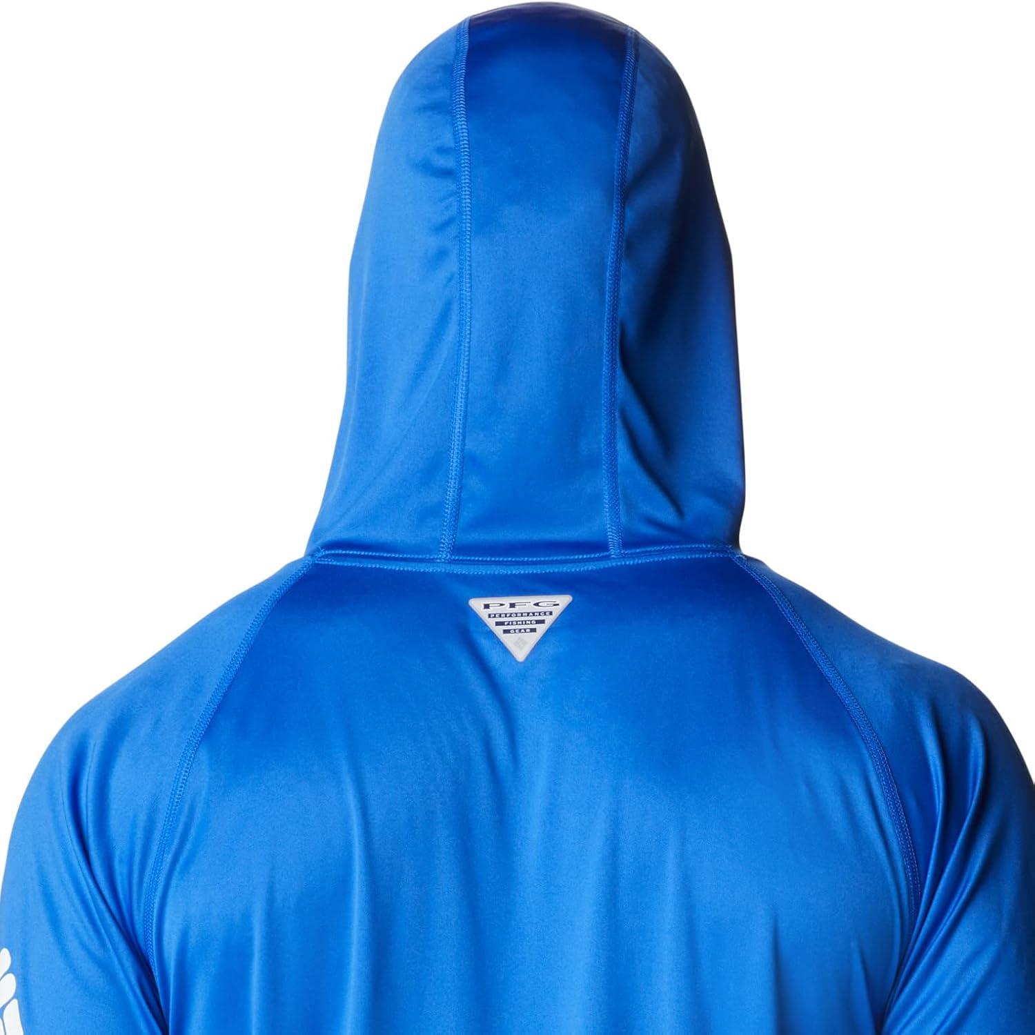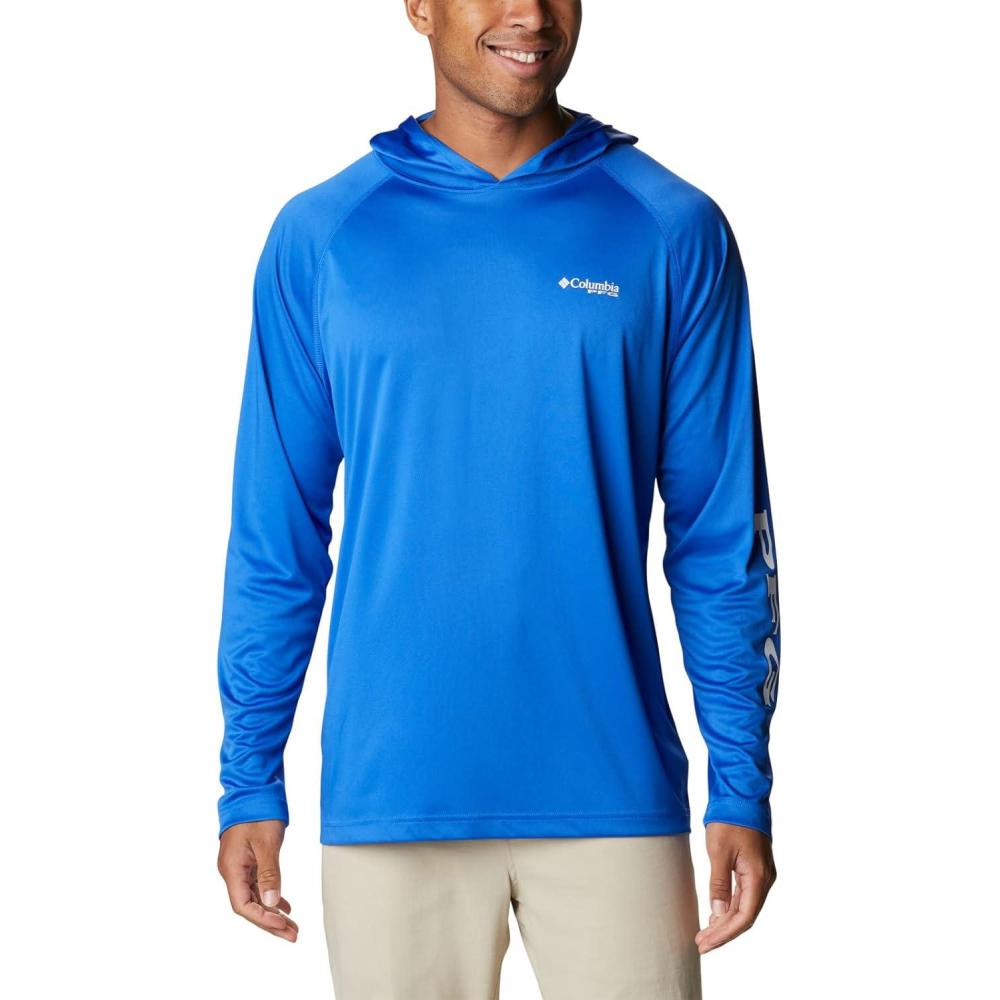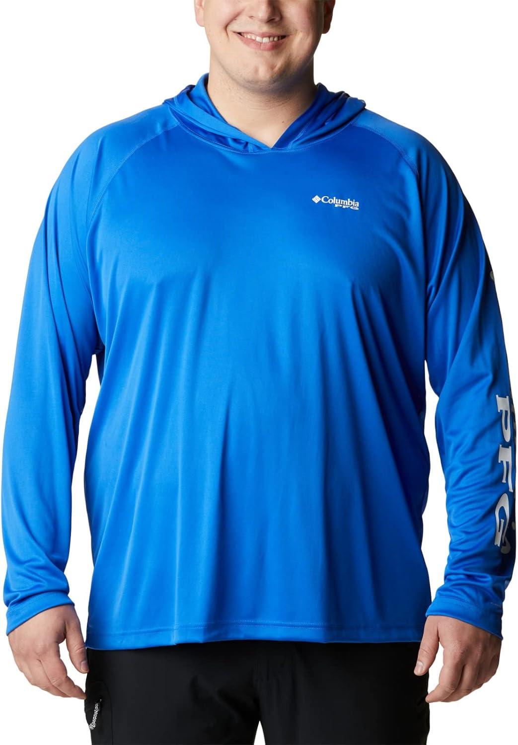 An anglers perfect hoodie: the Columbia PFG Terminal Tackle Hoodie is the ultimate day-out-on-the-boat staple for its quick-drying and sun protection fabric. This hoodie remains lightweight, yet durable, no matter the weather or catch. High quality materials and expert craftsmanship are the backbone of Columbia Men's apparel. The technology featured in this hoodie is necessary for any day out on the water. The exterior layer is made up of a combination of Columbia’s signature protection fabrics: UPF 50 works to block and shield your little one from harmful UVA and UVB sun rays known to cause skin damage; the advanced wicking fabric works to pull moisture away from the skin so sweat can evaporate and you can remain cool. The Columbia Terminal Tackle Hoodie also features subtle style—our signature logo runs along the sleeve and the chest. Columbia offers this fishing hoodie in multiple staple colors and sizes. To ensure the size you choose is right, utilize our sizing chart and the following measurement instructions: For the sleeves, start at the center back of your neck and measure across the shoulder and down to the sleeve. If you come up with a partial number, round up to the next even number. For the chest, measure at the fullest part of the chest, under the armpits and over the shoulder blades, keeping the tape measure firm and level.