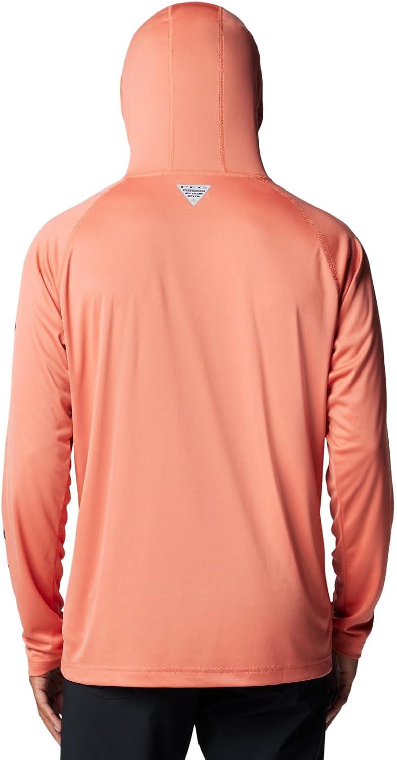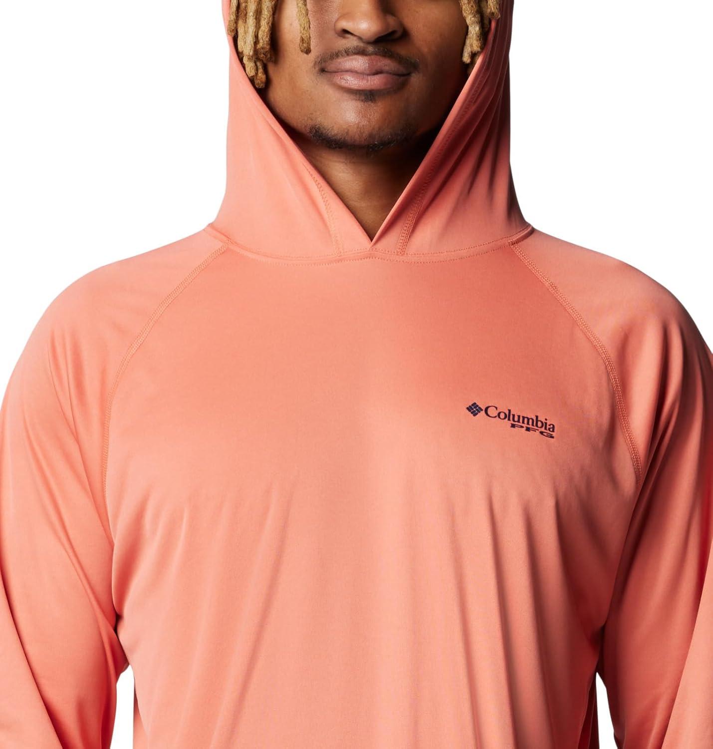 An anglers perfect hoodie: the Columbia PFG Terminal Tackle Hoodie is the ultimate day-out-on-the-boat staple for its quick-drying and sun protection fabric. This hoodie remains lightweight, yet durable, no matter the weather or catch. High quality materials and expert craftsmanship are the backbone of Columbia Men's apparel. The technology featured in this hoodie is necessary for any day out on the water. The exterior layer is made up of a combination of Columbia’s signature protection fabrics: UPF 50 works to block and shield your little one from harmful UVA and UVB sun rays known to cause skin damage; the advanced wicking fabric works to pull moisture away from the skin so sweat can evaporate and you can remain cool. The Columbia Terminal Tackle Hoodie also features subtle style—our signature logo runs along the sleeve and the chest. Columbia offers this fishing hoodie in multiple staple colors and sizes. To ensure the size you choose is right, utilize our sizing chart and the following measurement instructions: For the sleeves, start at the center back of your neck and measure across the shoulder and down to the sleeve. If you come up with a partial number, round up to the next even number. For the chest, measure at the fullest part of the chest, under the armpits and over the shoulder blades, keeping the tape measure firm and level.