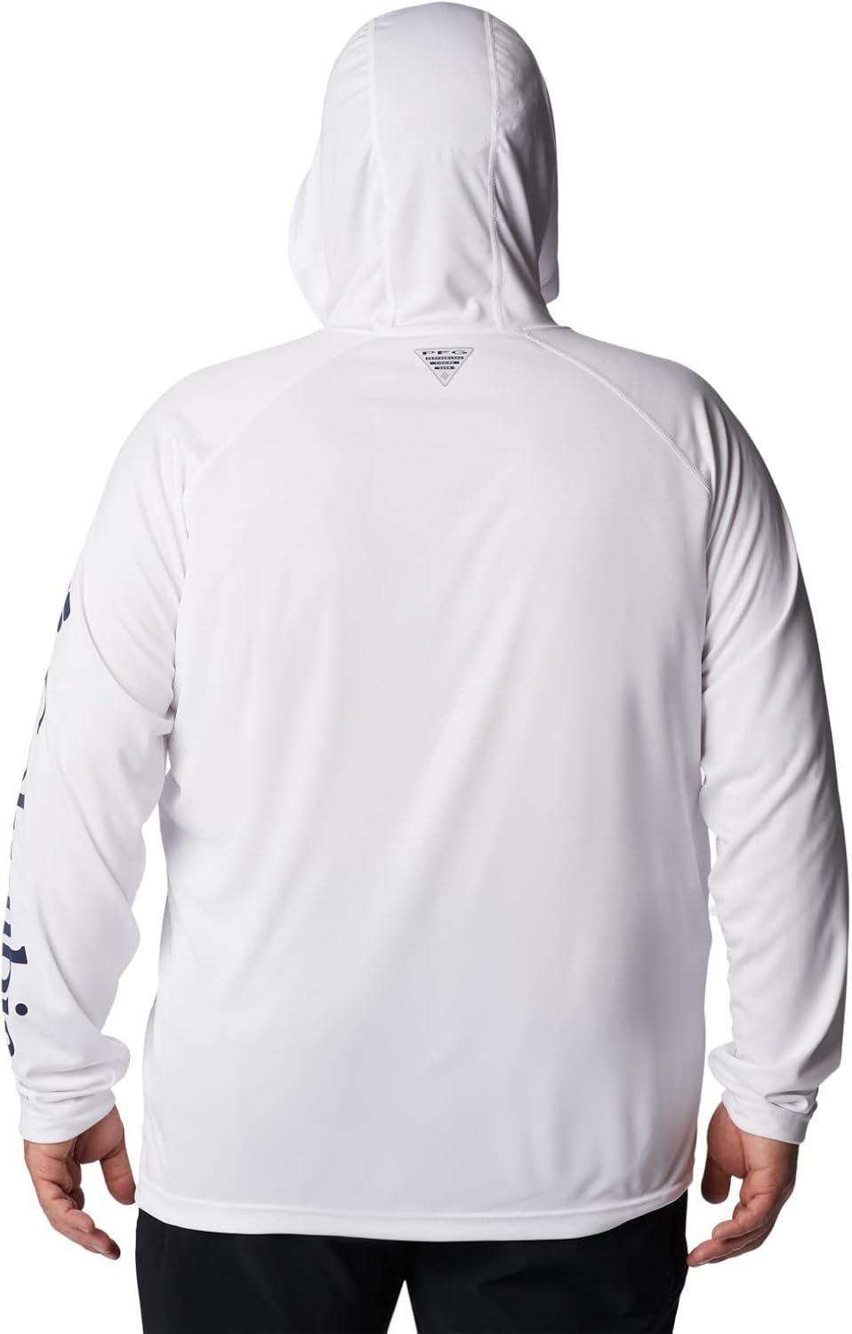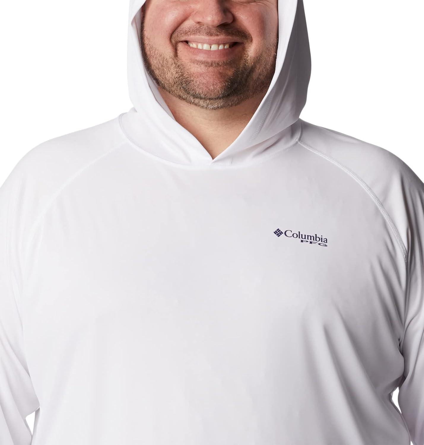 An anglers perfect hoodie: the Columbia PFG Terminal Tackle Hoodie is the ultimate day-out-on-the-boat staple for its quick-drying and sun protection fabric. This hoodie remains lightweight, yet durable, no matter the weather or catch. High quality materials and expert craftsmanship are the backbone of Columbia Men's apparel. The technology featured in this hoodie is necessary for any day out on the water. The exterior layer is made up of a combination of Columbia’s signature protection fabrics: UPF 50 works to block and shield your little one from harmful UVA and UVB sun rays known to cause skin damage; the advanced wicking fabric works to pull moisture away from the skin so sweat can evaporate and you can remain cool. The Columbia Terminal Tackle Hoodie also features subtle style—our signature logo runs along the sleeve and the chest. Columbia offers this fishing hoodie in multiple staple colors and sizes. To ensure the size you choose is right, utilize our sizing chart and the following measurement instructions: For the sleeves, start at the center back of your neck and measure across the shoulder and down to the sleeve. If you come up with a partial number, round up to the next even number. For the chest, measure at the fullest part of the chest, under the armpits and over the shoulder blades, keeping the tape measure firm and level.