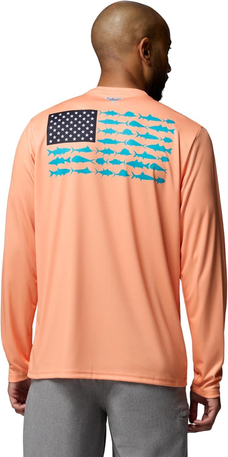 Columbia Men’s Terminal Tackle PFG Fish Flag Long Sleeve Shirt Discontinued(Bright Nectar)