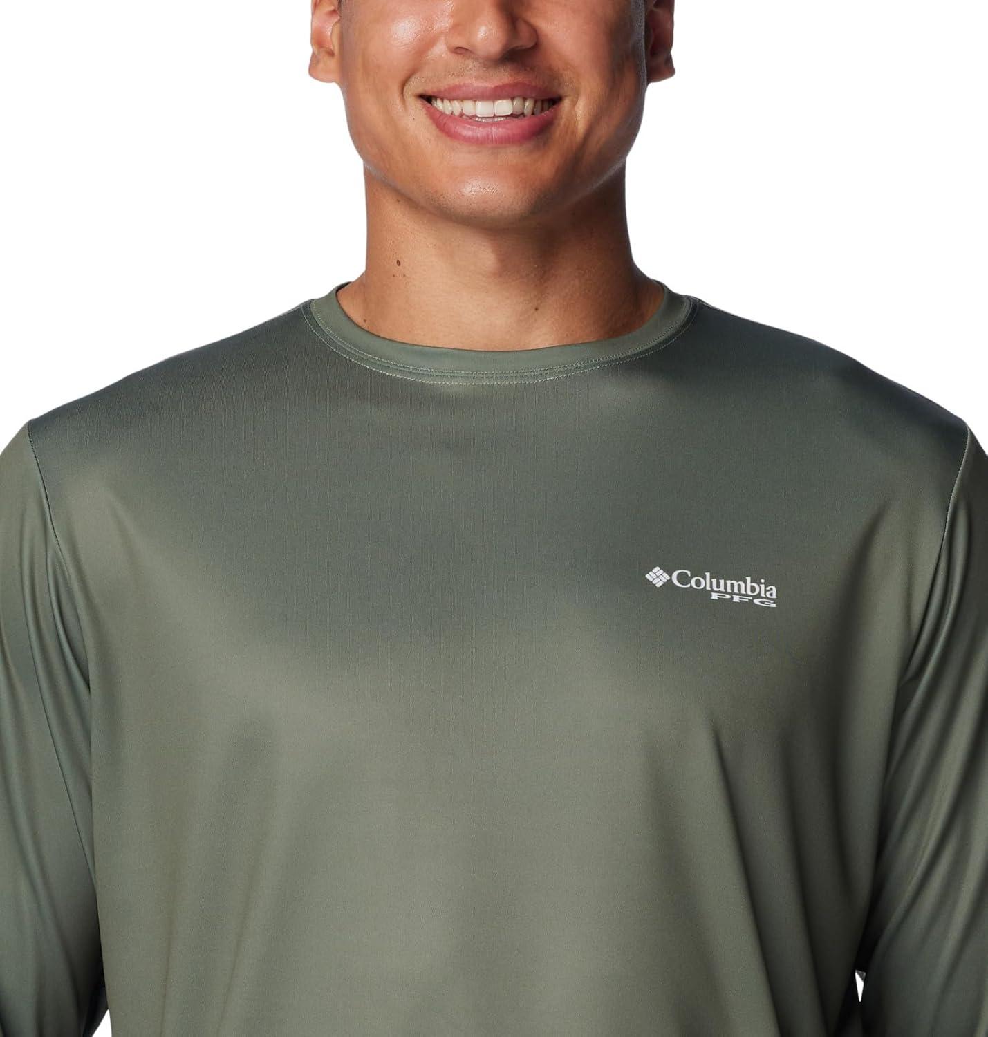 Columbia Men’s Terminal Tackle PFG Fish Flag Long Sleeve Shirt Discontinued(Cypress/Cool Grey Bass Lures)