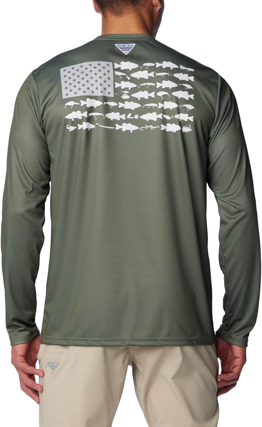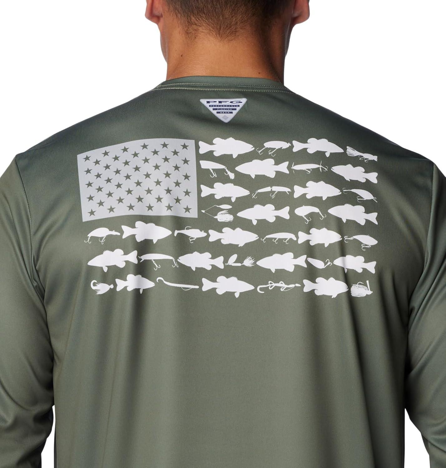 Columbia Men's Terminal Tackle PFG Fish Flag Long Sleeve Shirt Discontinued(Cypress/Cool Grey Bass Lures)