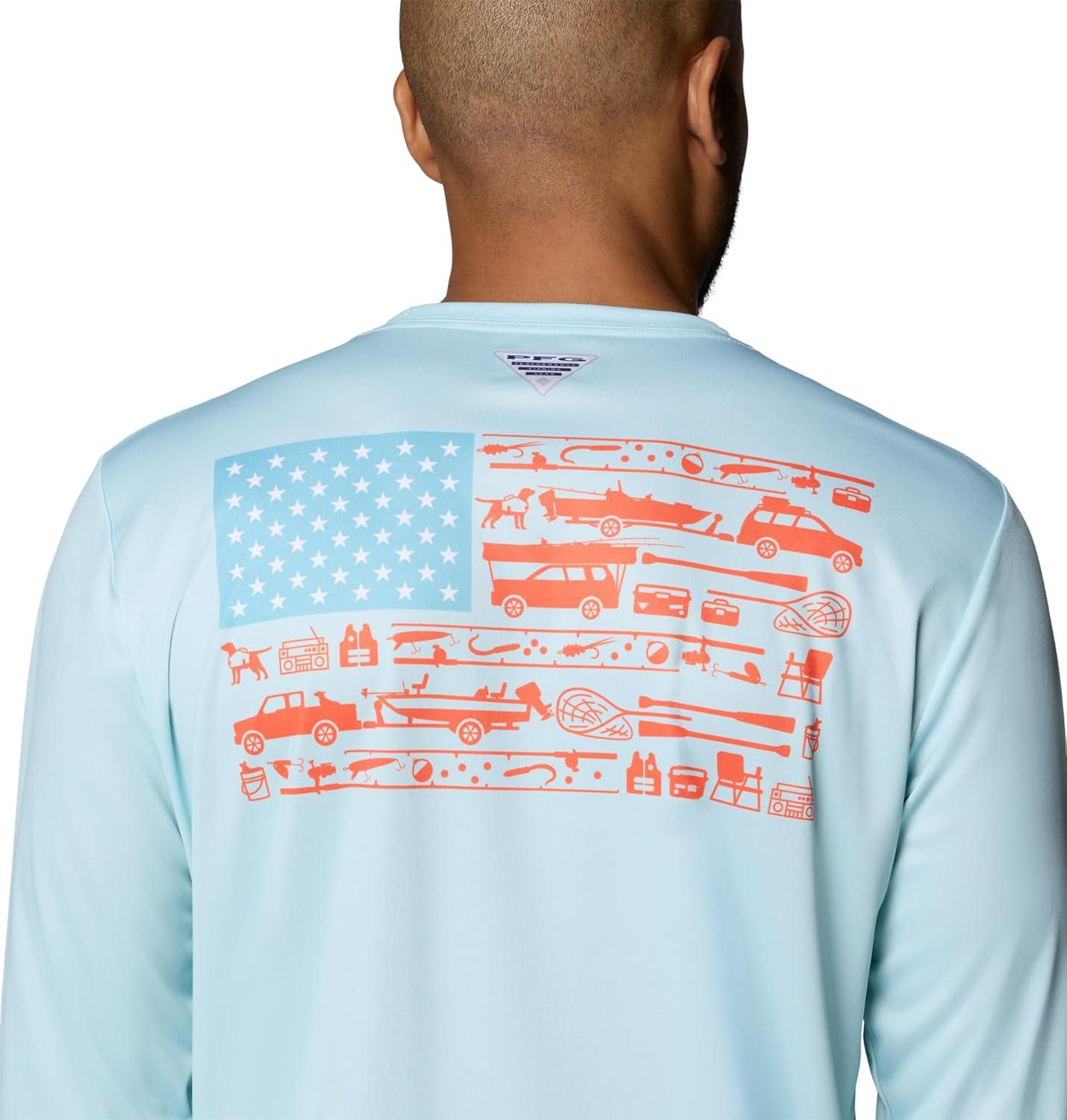 Columbia Men’s Terminal Tackle PFG Fish Flag Long Sleeve Shirt Discontinued(Gulf Stream/Sorbet)