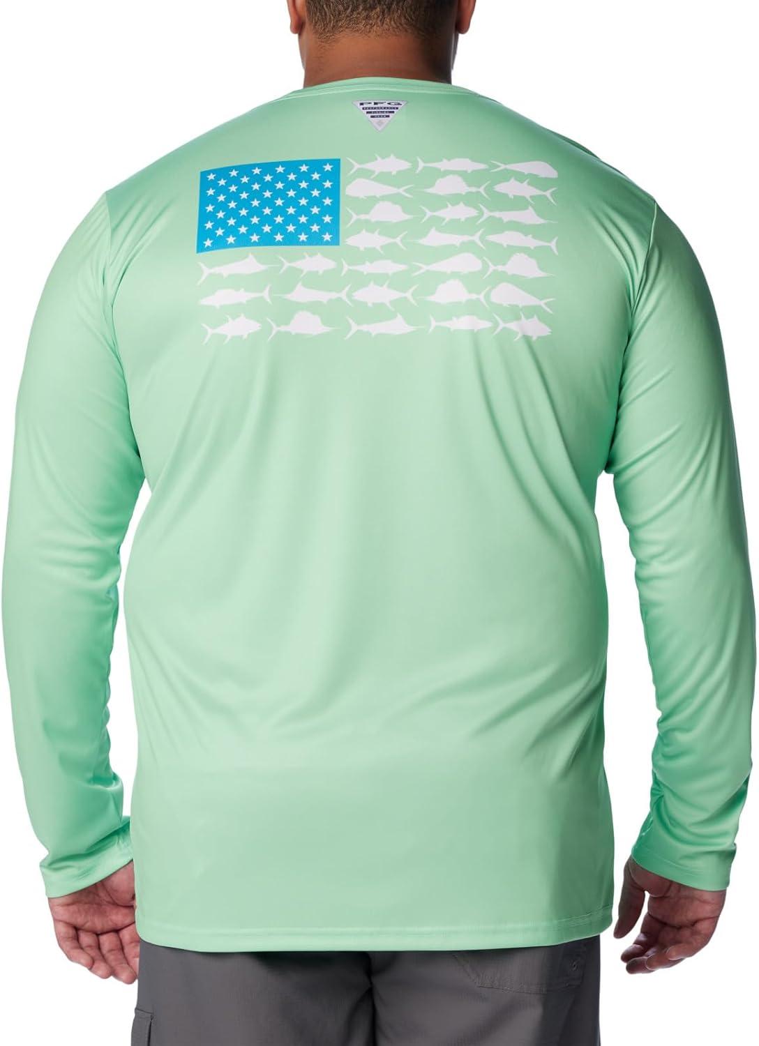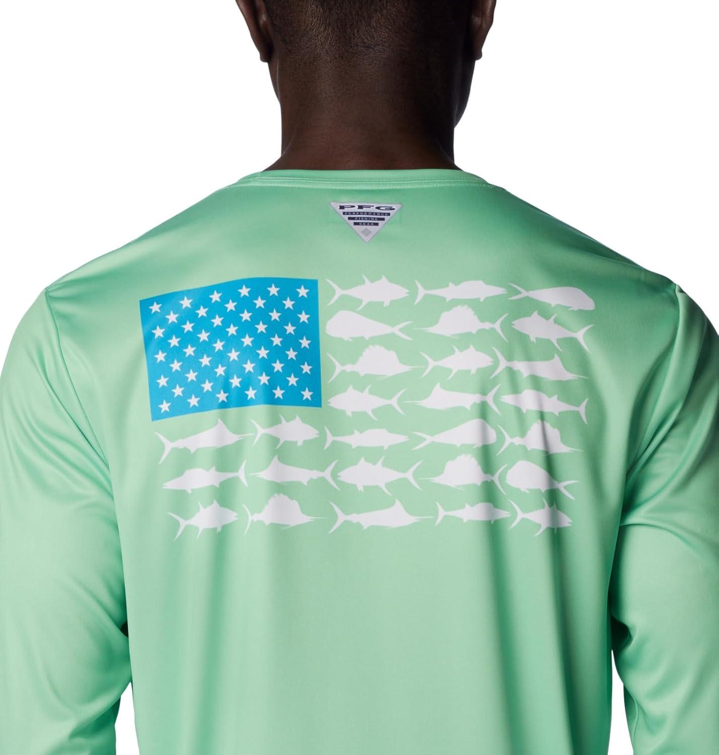 Columbia Men’s Terminal Tackle PFG Fish Flag Long Sleeve Shirt Discontinued(Ocean Mint/Ocean Blue Offshore Slam)