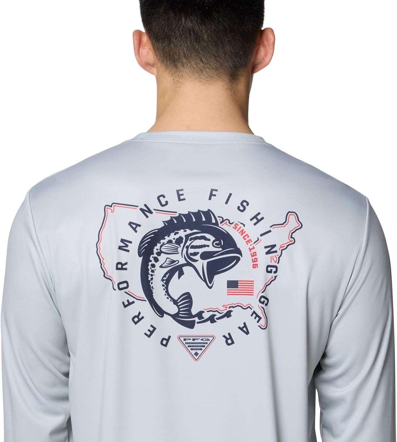 Columbia Men’s Terminal Tackle PFG Statetriot Long Sleeve(Cool Grey/Clean Line Pride Usa Bass)