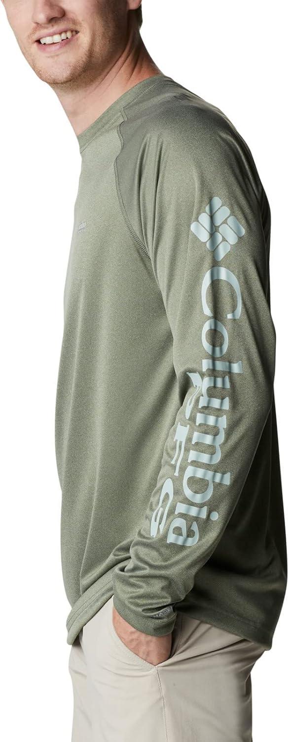 Columbia Men’s Terminal Tackle PFG Triangle Long Sleeve Shirt(Cypress Heather/Cool Green Logo)