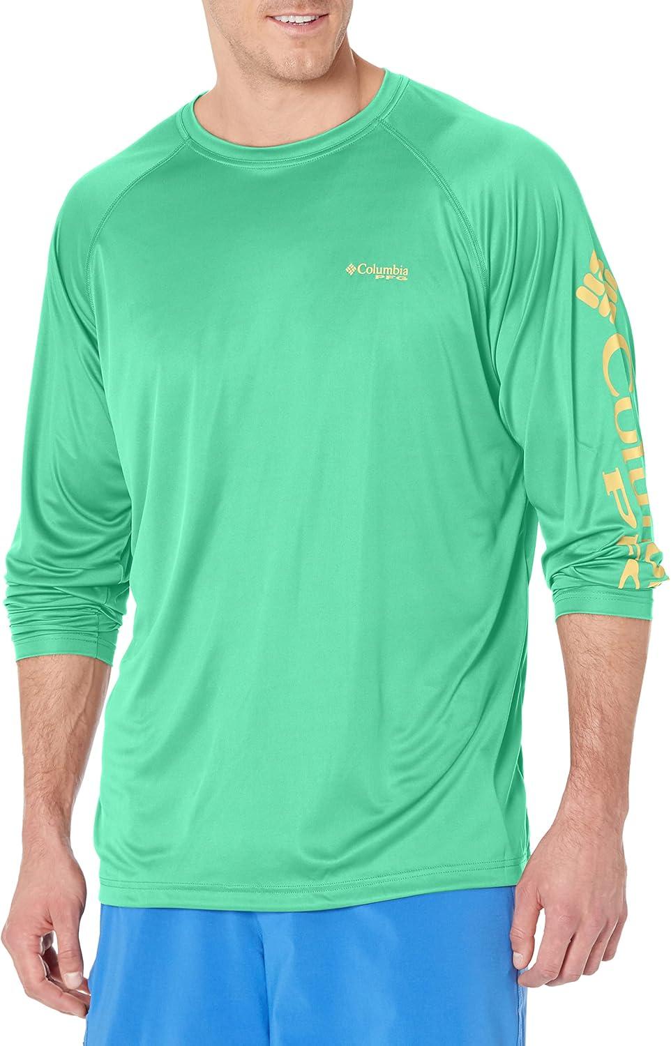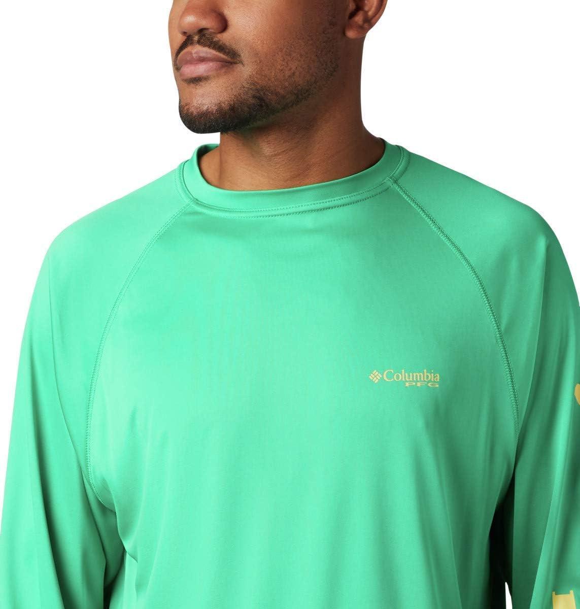 Columbia Men’s Terminal Tackle PFG Triangle Long Sleeve Shirt(Dark Lime/Sunlit Logo)
