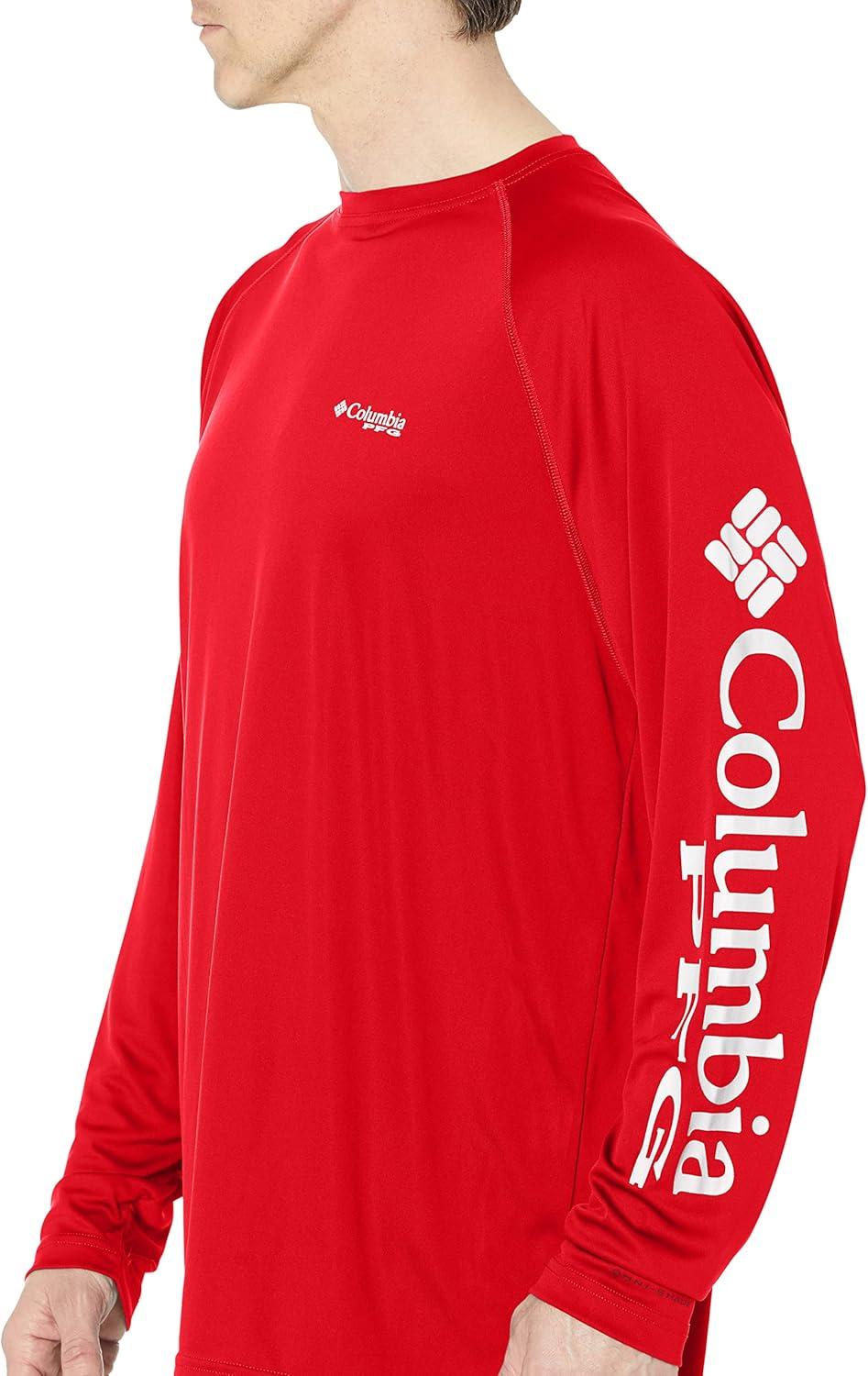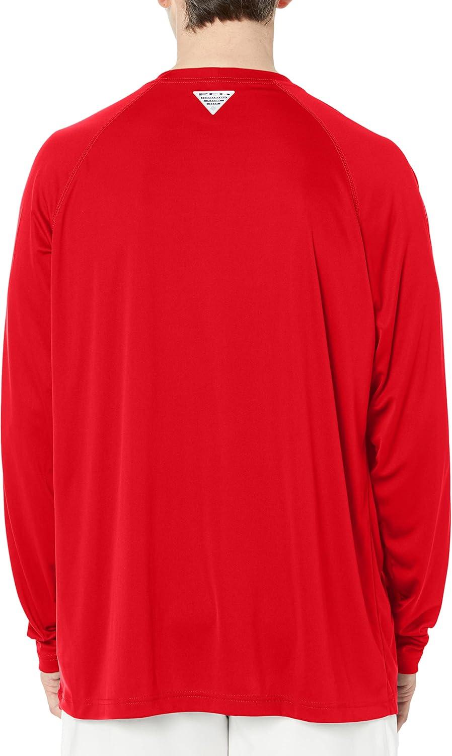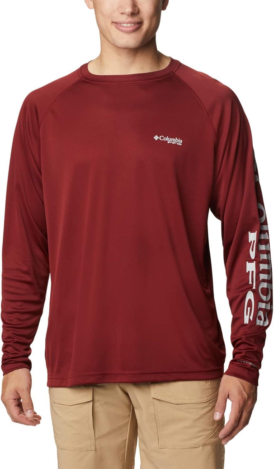 Columbia Men’s Terminal Tackle PFG Triangle Long Sleeve Shirt(Red Jasper/Cool Grey Logo)