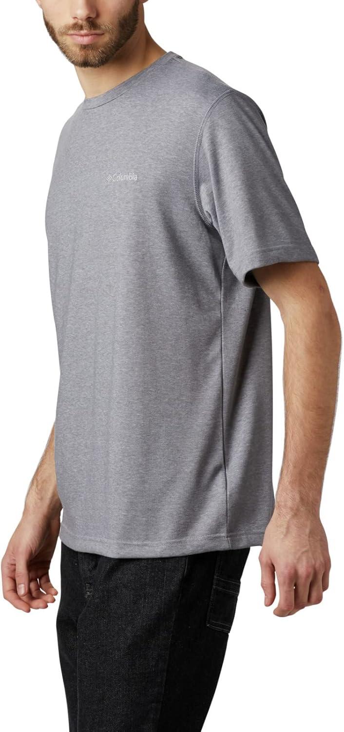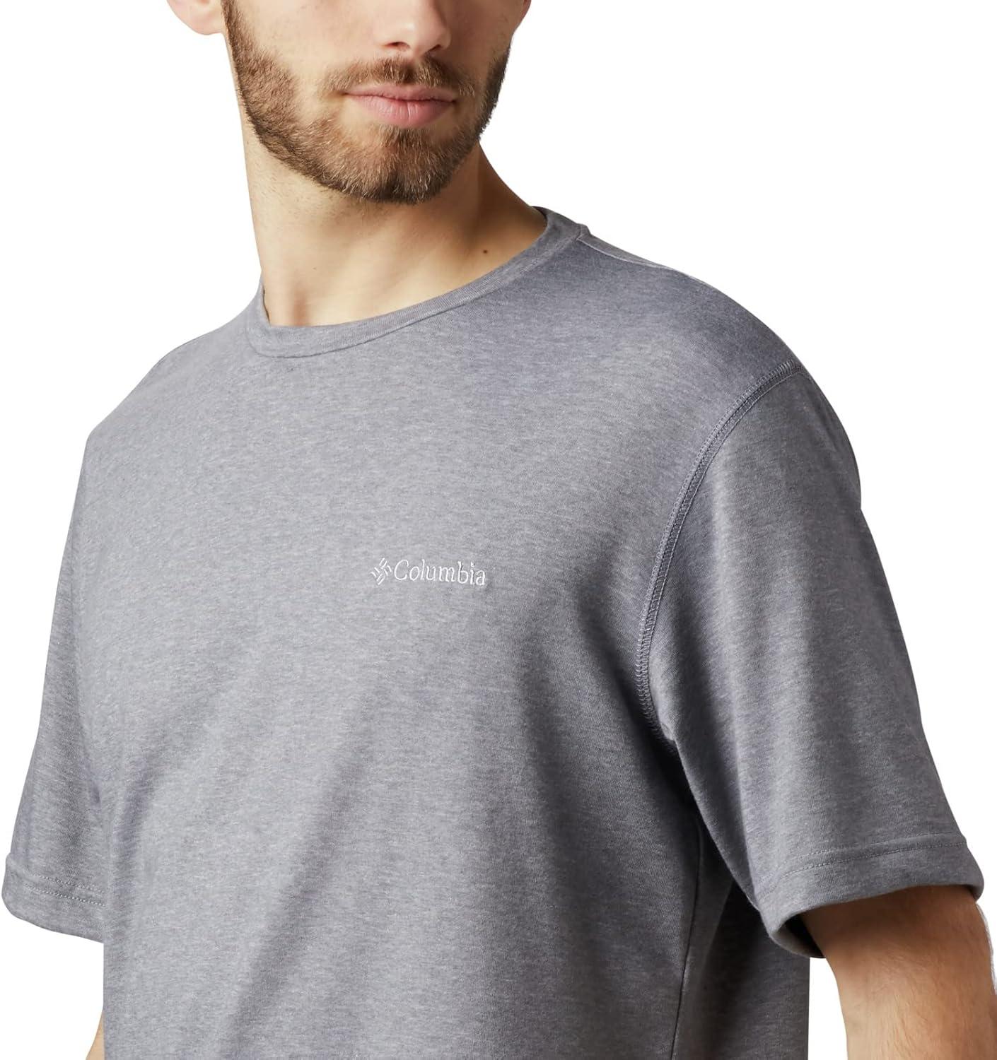 A performance crew built for outdoor activity, featuring moisture-wicking, quick-drying fabric. Made from a soft Omni-Wick blend of heathered jersey cotton and polyester, this shirt is sure to be a favorite for all-day comfort. Columbia offers this short-sleeve crew in multiple colors and sizes. Extended sizing available. Regular Fit.