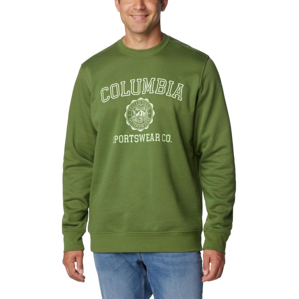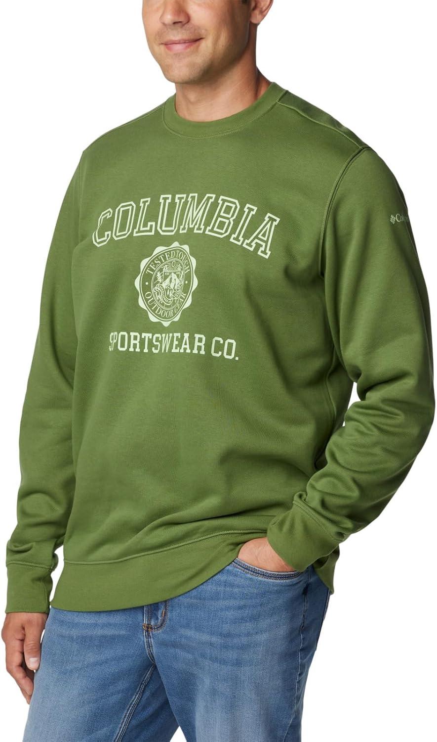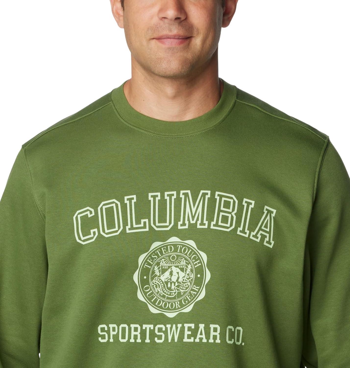 A classic crew sweatshirt with the Columbia logo, featuring a soft cotton blend and comfort cuffs. A classic sweatshirt inherently makes everything feel warm and cozy. Layer with other shirts and jackets to dial in the warmth and year-round comfort. Columbia offers this sweatshirt in multiple colors and sizes. Regular Fit. To ensure the size you choose is right, utilize our sizing chart and the following measurement instructions: For the sleeves, start at the center back of your neck and measure across the shoulder and down to the sleeve. If you come up with a partial number, round up to the next even number. For the chest, measure at the fullest part of the chest, under the armpits and over the shoulder blades, keeping the tape measure firm and level.