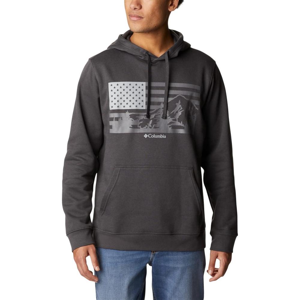 imageColumbia Mens Trek Graphic HoodieCity Grey HeatherTreestriped Flag