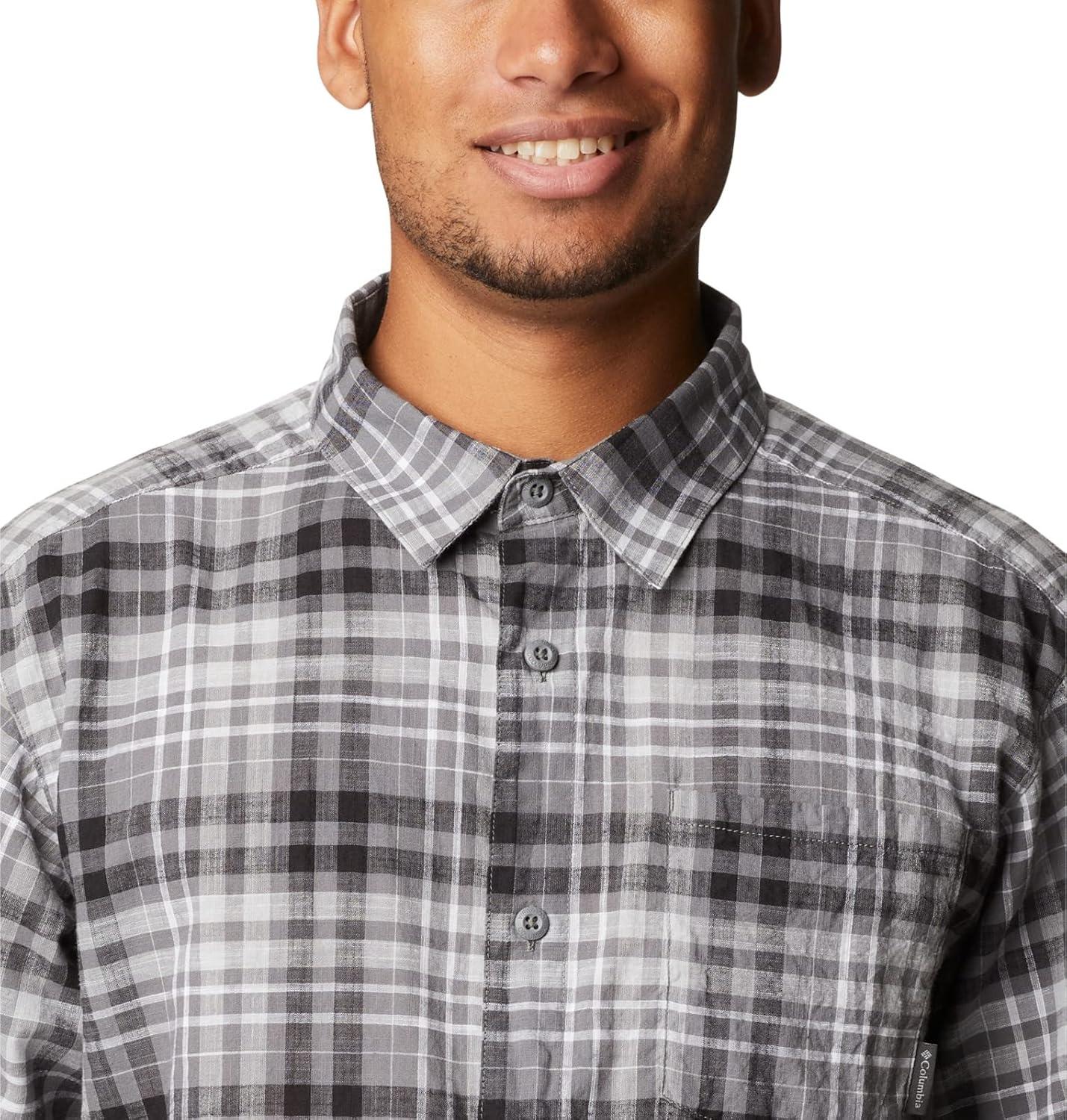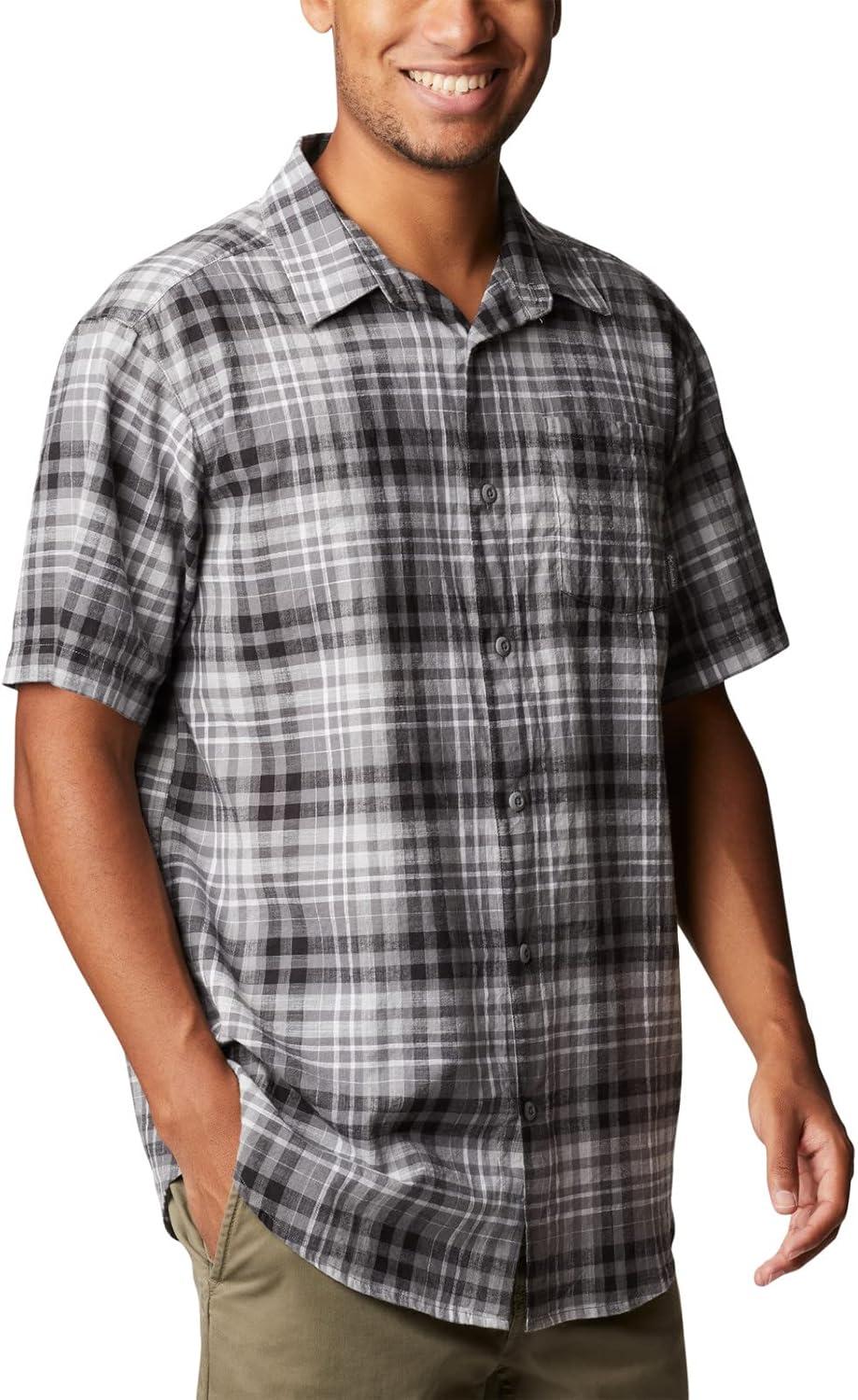 Columbia Men’s Under Exposure Yarn Dye Short Sleeve Shirt(City Grey Madras Gingham)