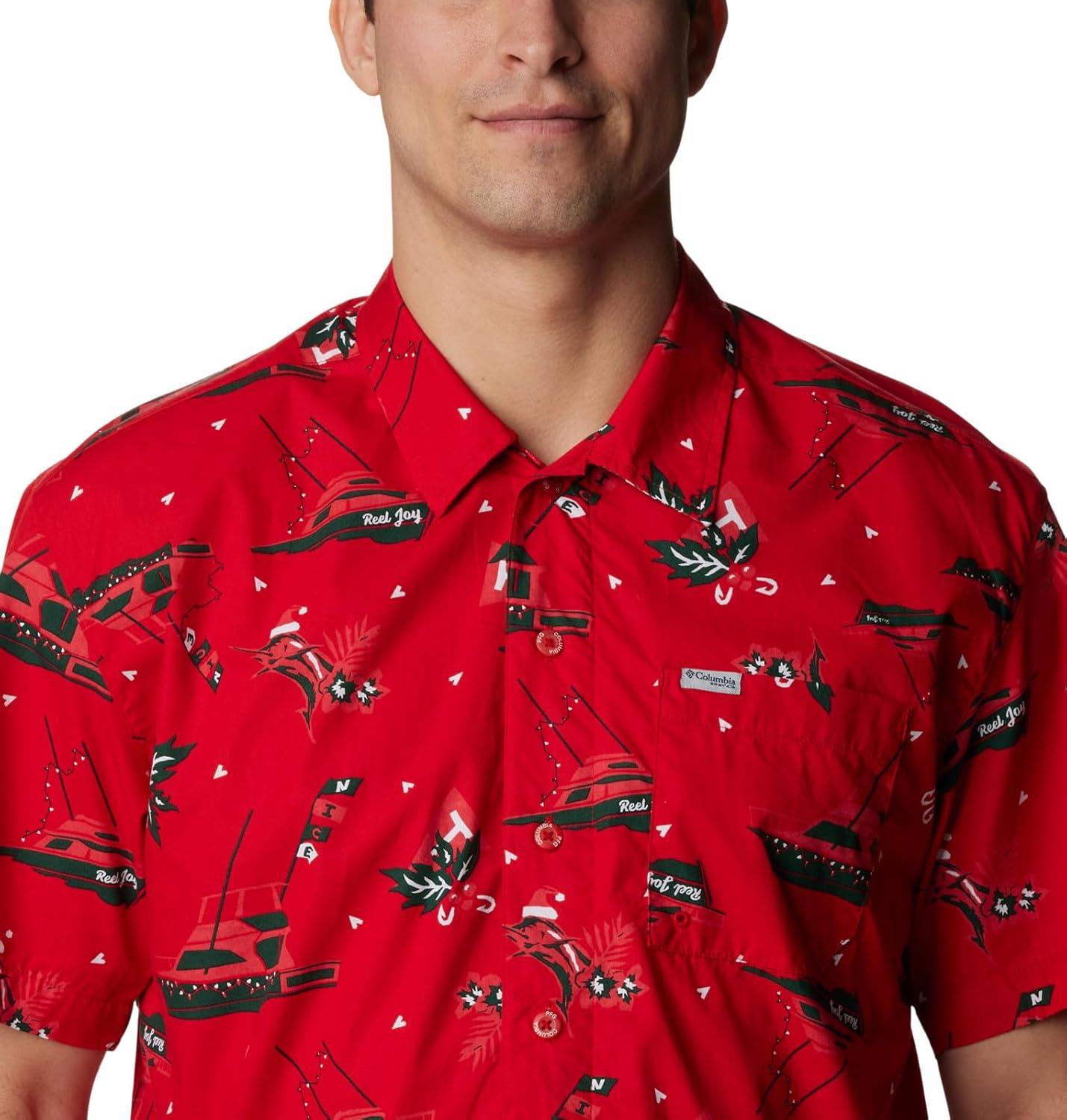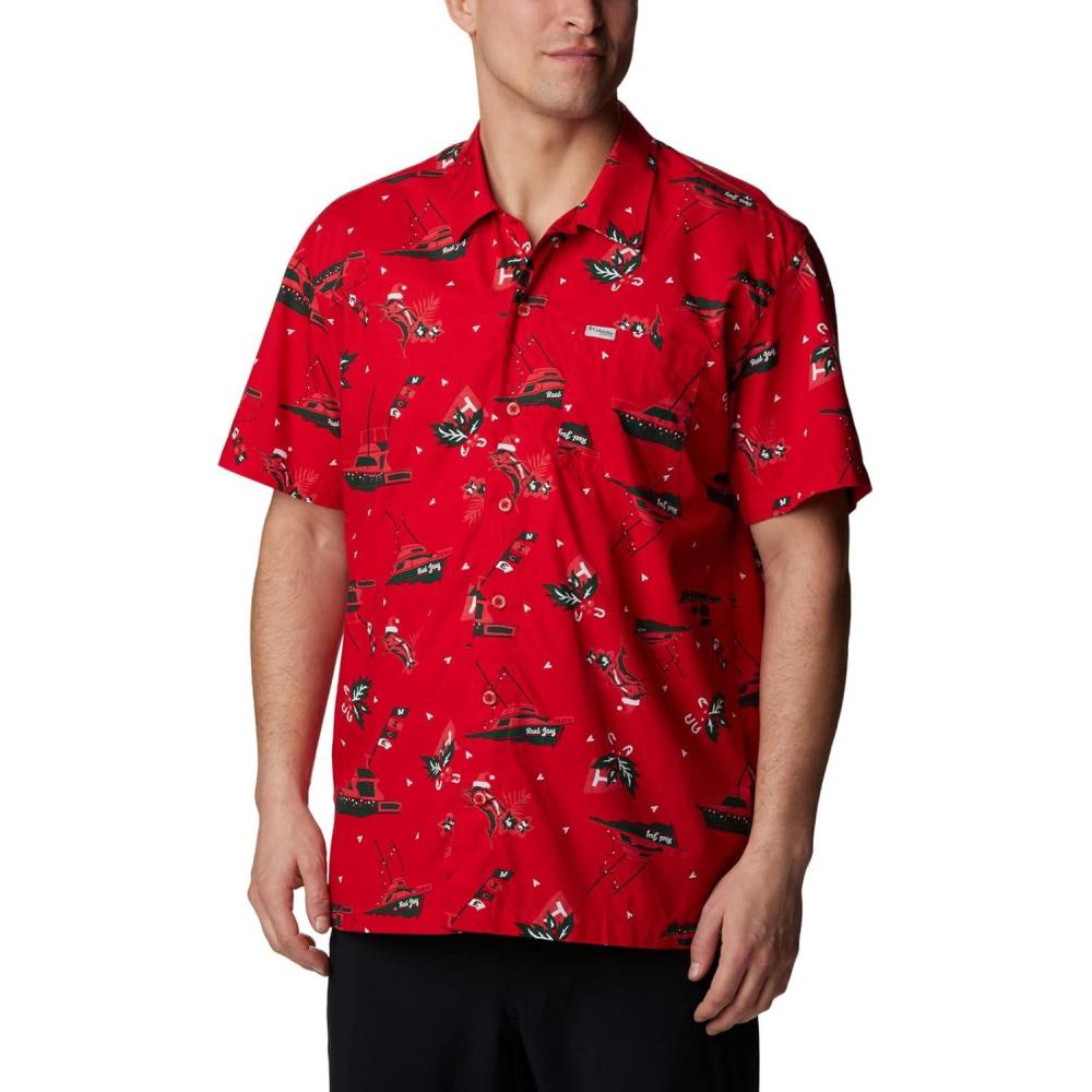 Columbia Sportswear Men’s Trollers Best Short Sleeve Shirt(Red Spark Reel Joy Print)