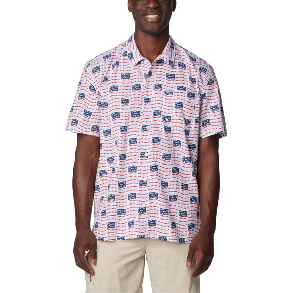 Columbia Sportswear Men’s Trollers Best Short Sleeve Shirt(White/Pfg Banner)