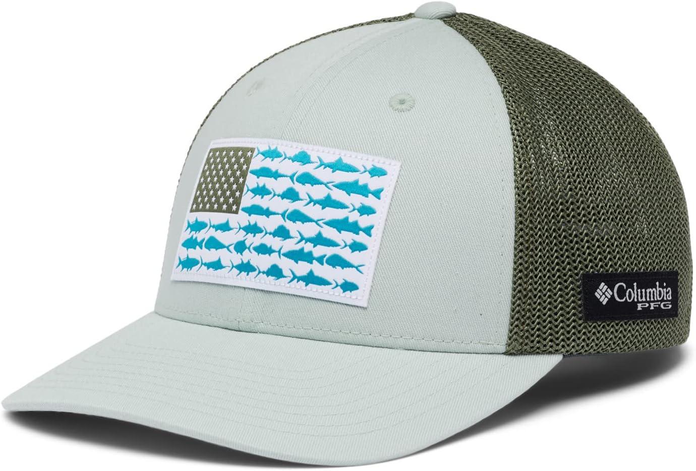 Columbia Unisex Adult PFG Logo Mesh Ball Cap(Cool Green/Mosstone/Us Fish Flag)