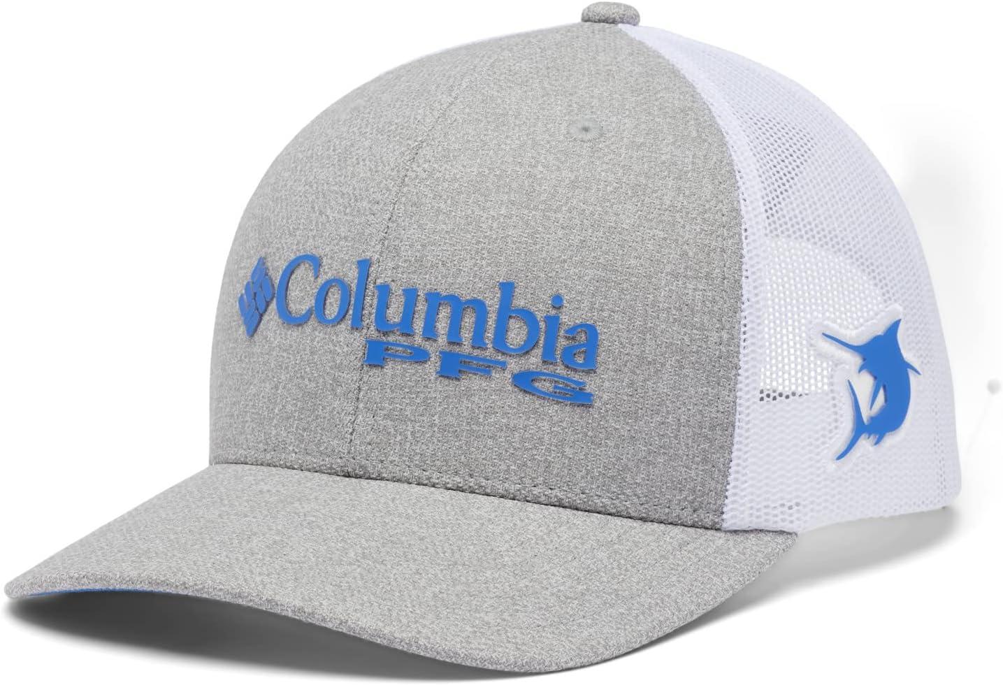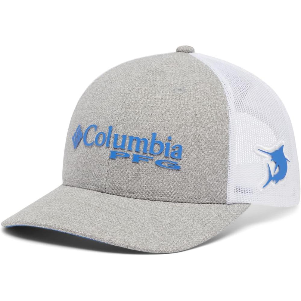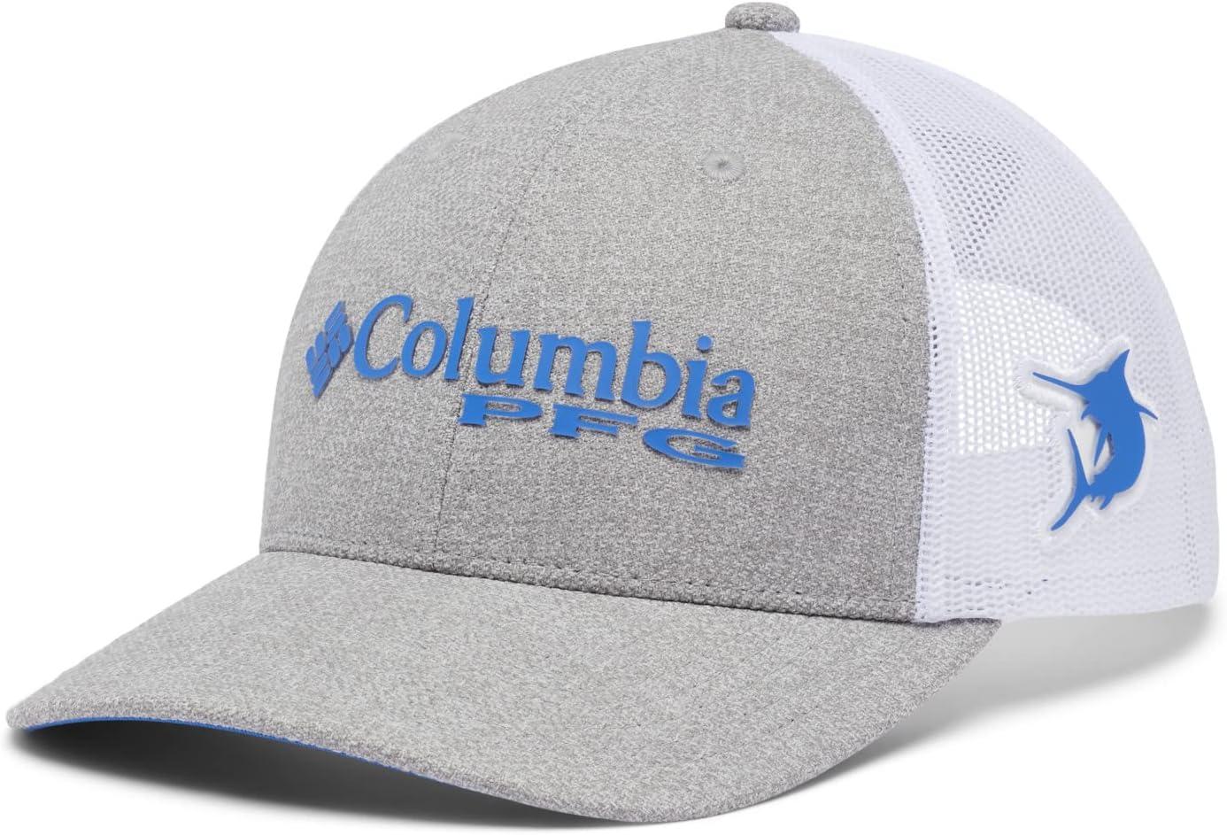 Columbia Unisex Adult PFG Logo Mesh Ball Cap(Cool Grey Heather/Vivid Blue)