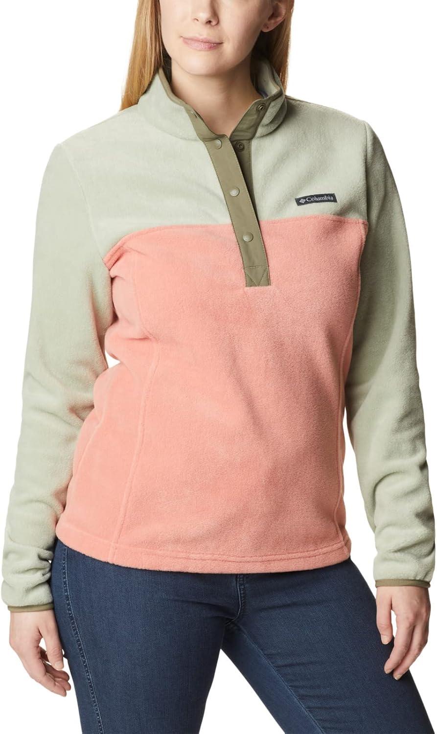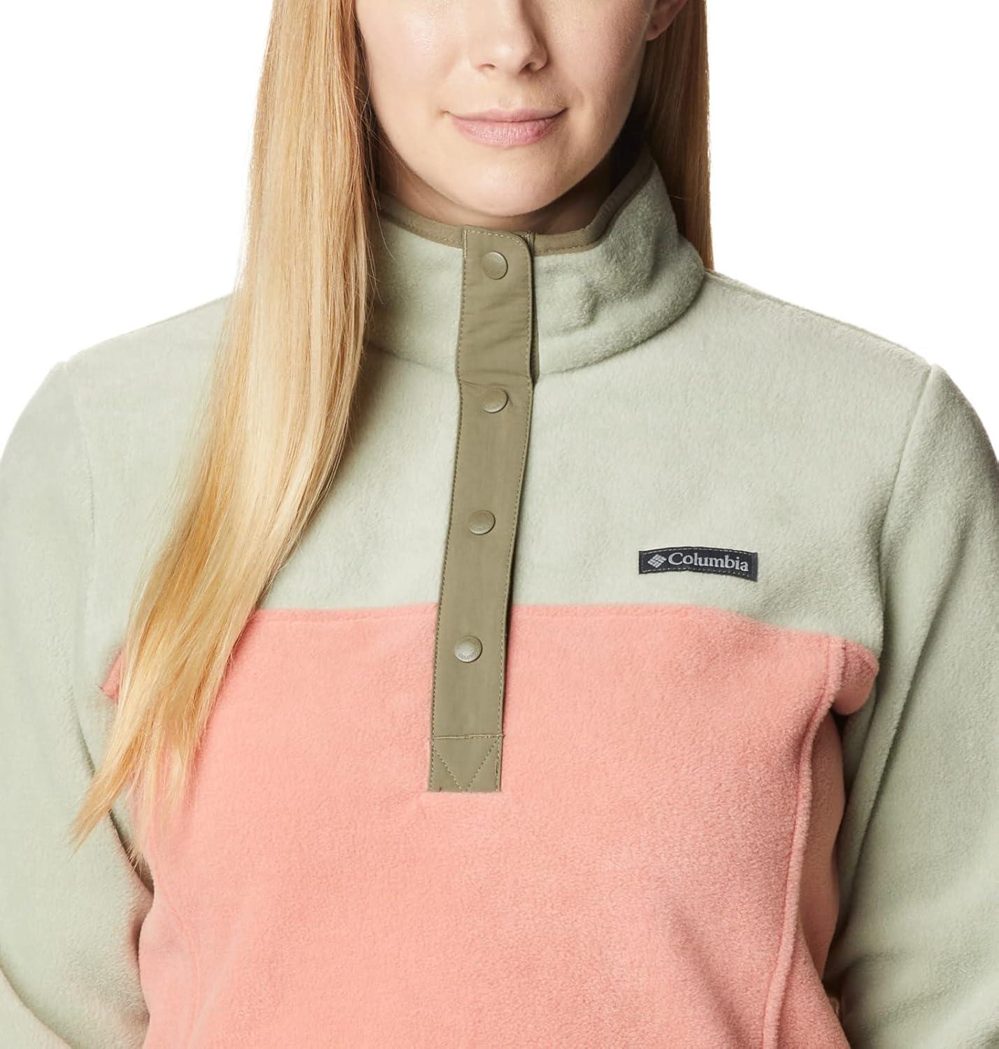 Columbia womens Benton Springs 1/2 Snap Pullover(Faded Peach/Safari/Stone Green)