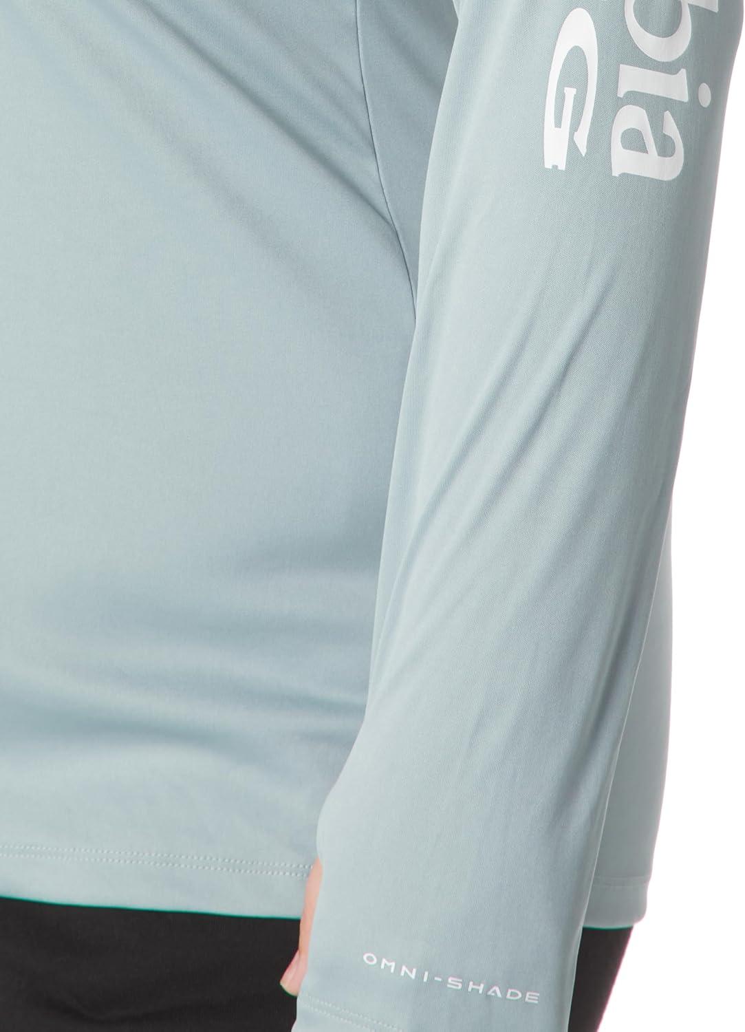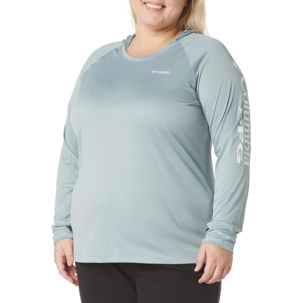 Columbia Women's PFG Tidal Tee Hoodie, UV Protection, Moisture-Wicking(Crushed Blue/White Logo)