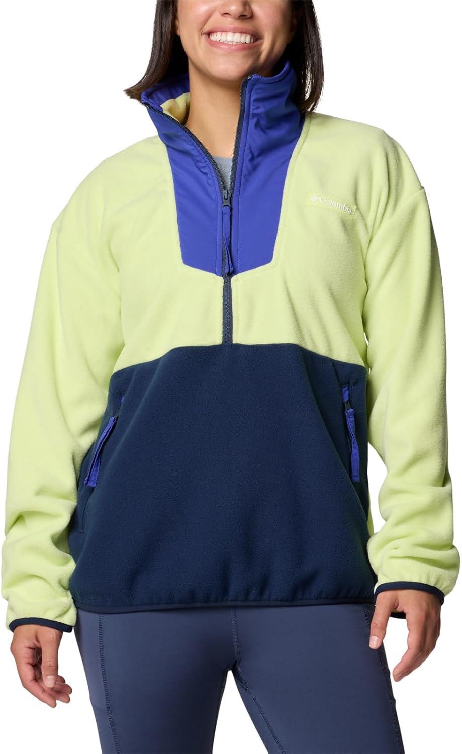 Columbia womens Sequoia Grove Half Zip Fleece(Spring Yellow/Clematis Blue/Collegiate Navy)