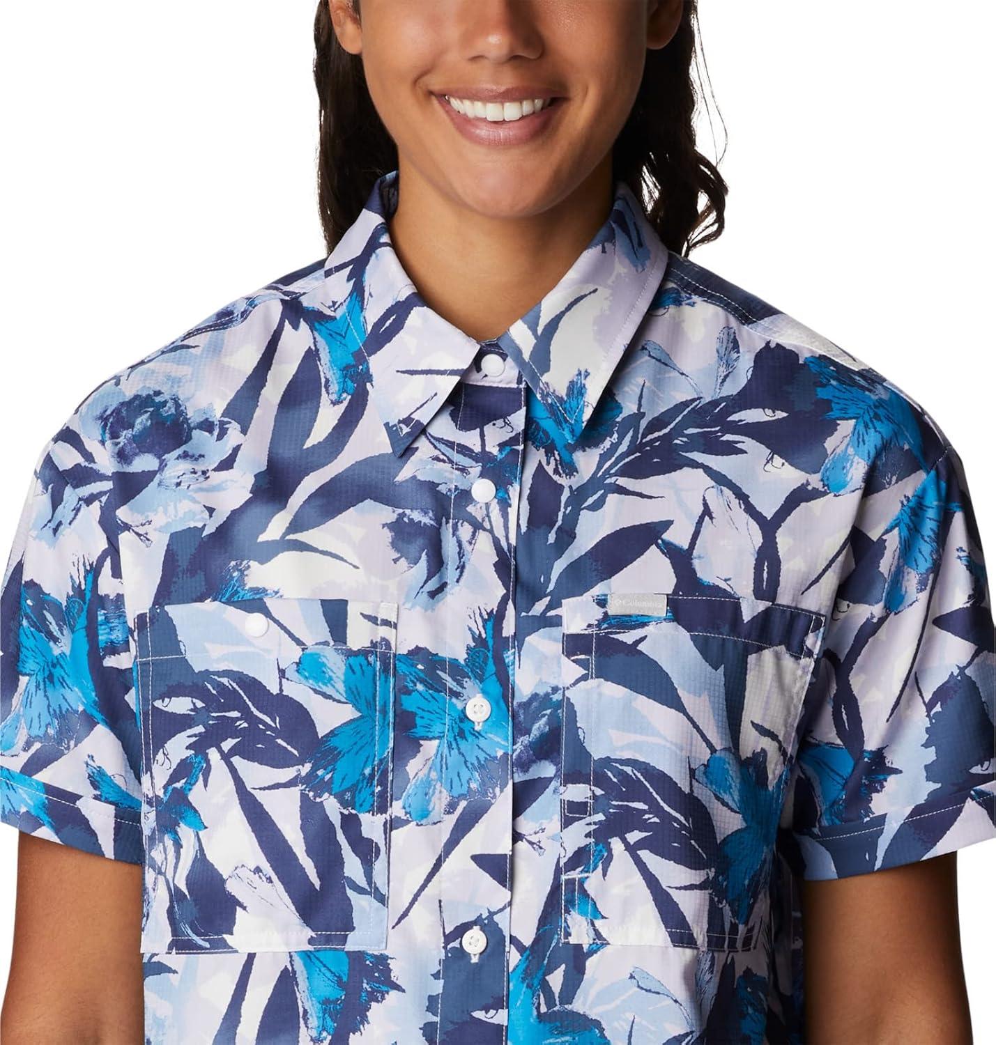 Columbia Womens Silver Ridge Utility Short Sleeve Shirt(White/Floriculture)