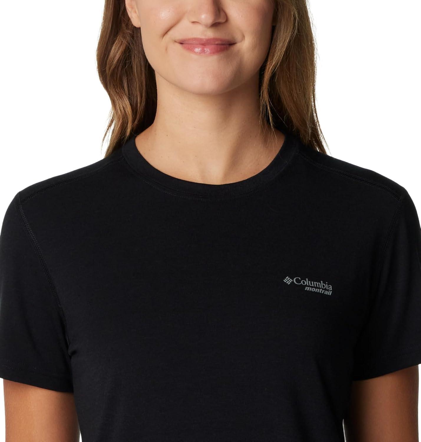 Columbia Women’s Standard Endless Trail Running Tech Tee(Black/Pale Blue Montrail Graphic)
