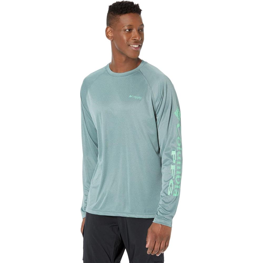 Men’s PFG Terminal Tackle Heather Long Sleeve Shirt(Light Jade Heather/Metal Logo)
