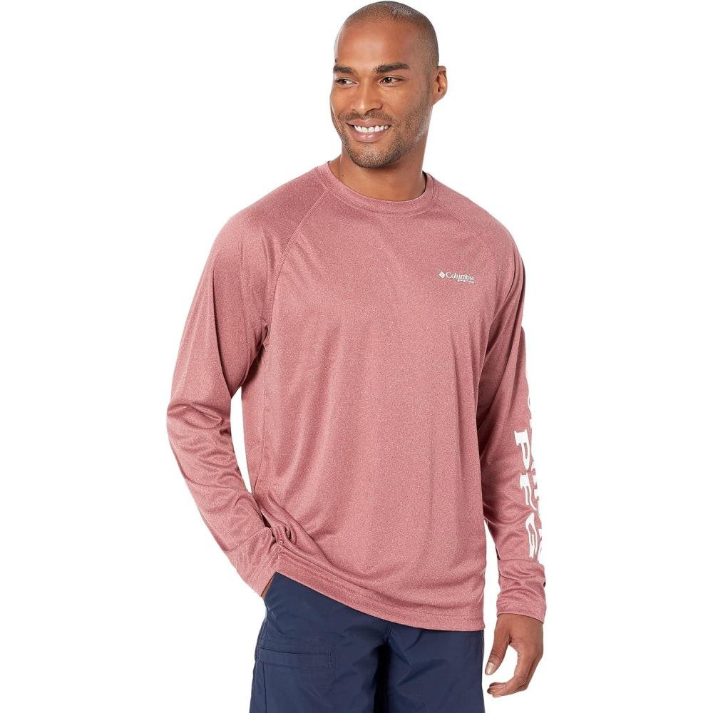 Men's PFG Terminal Tackle Heather Long Sleeve Shirt(Red Jasper Heather/White Logo)